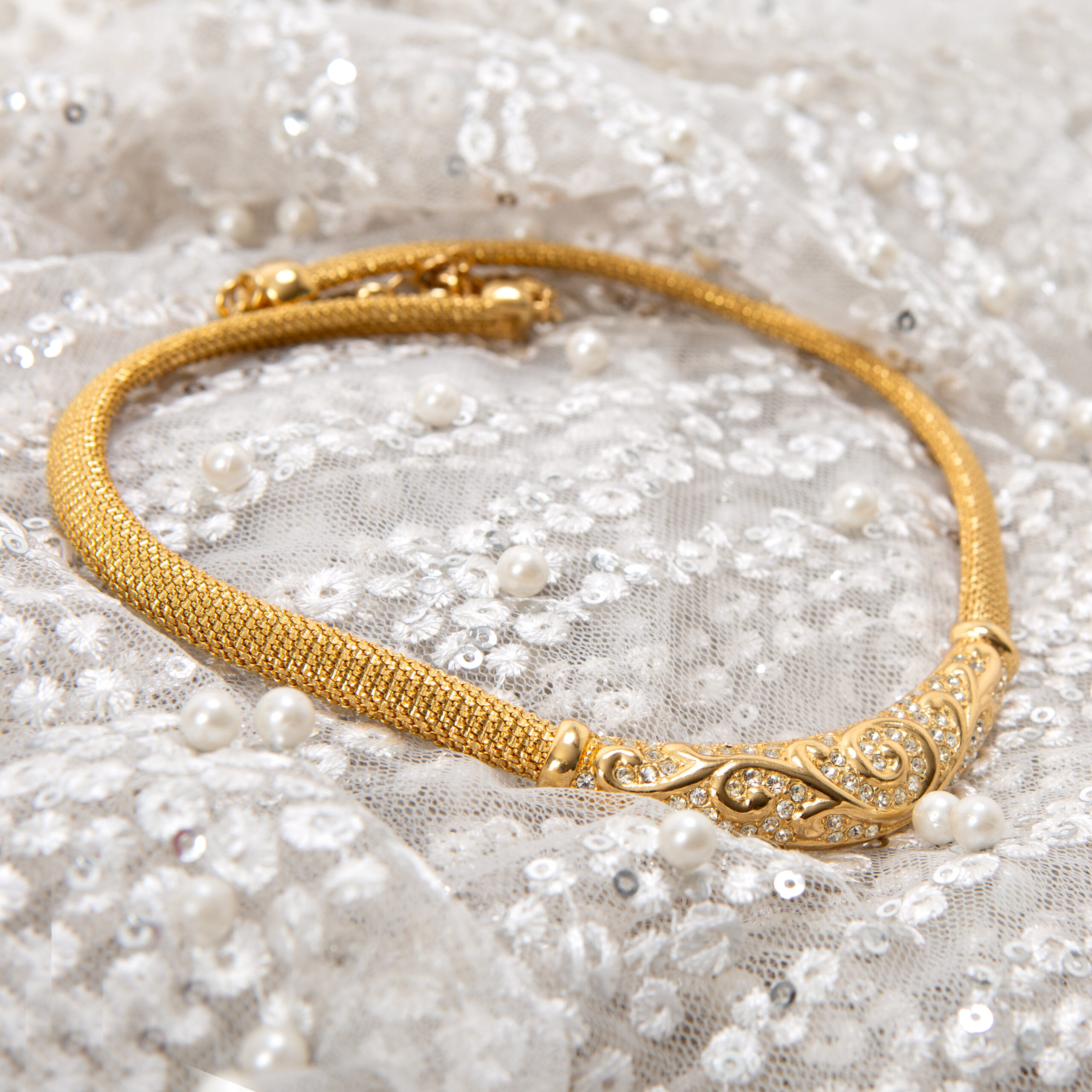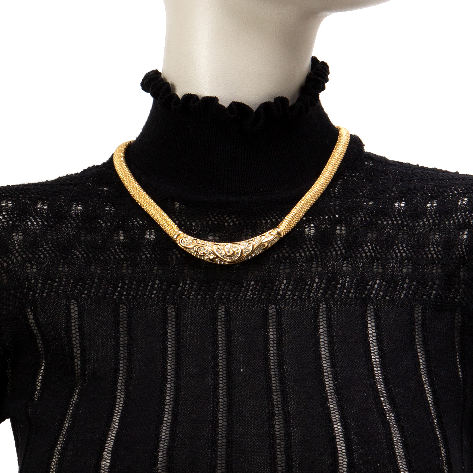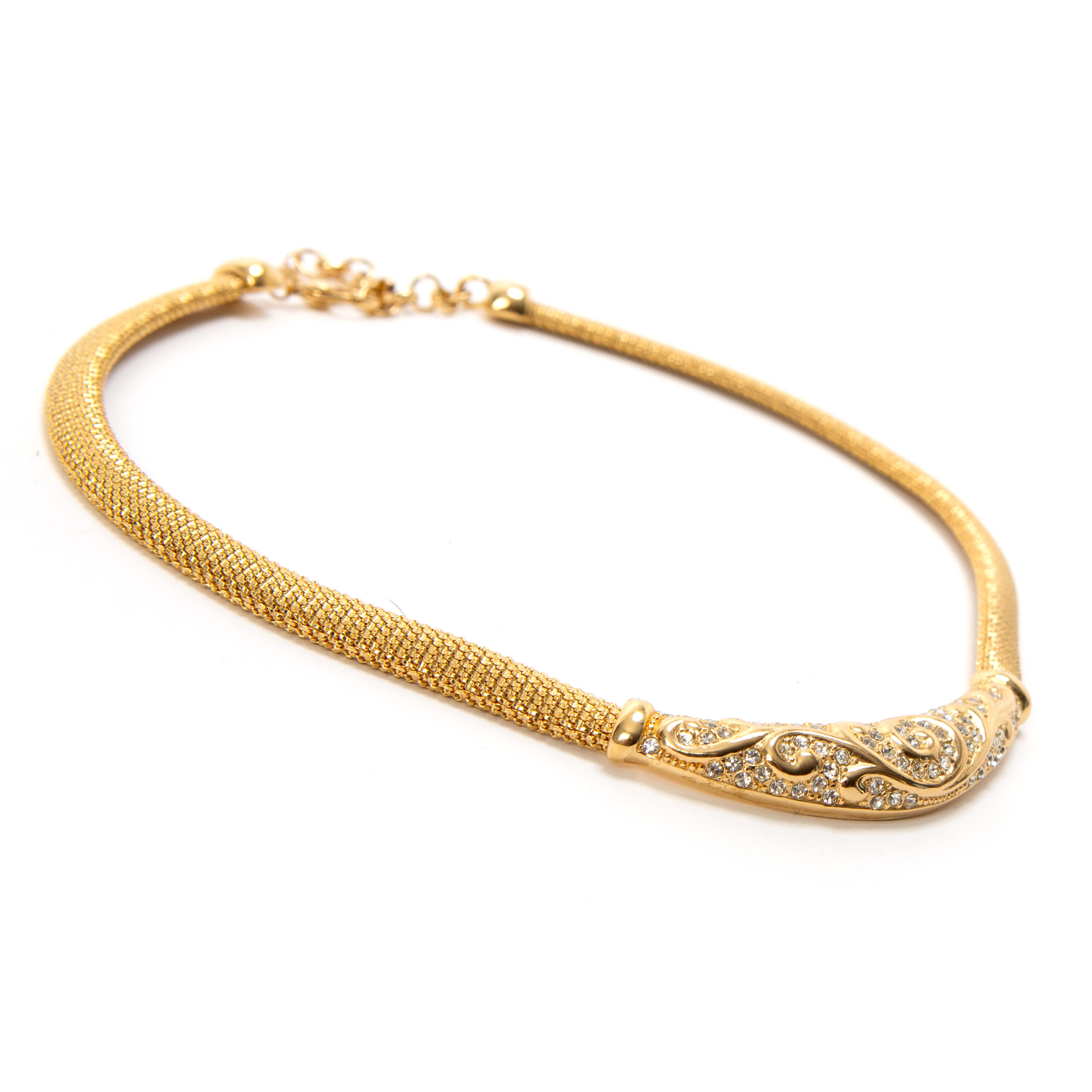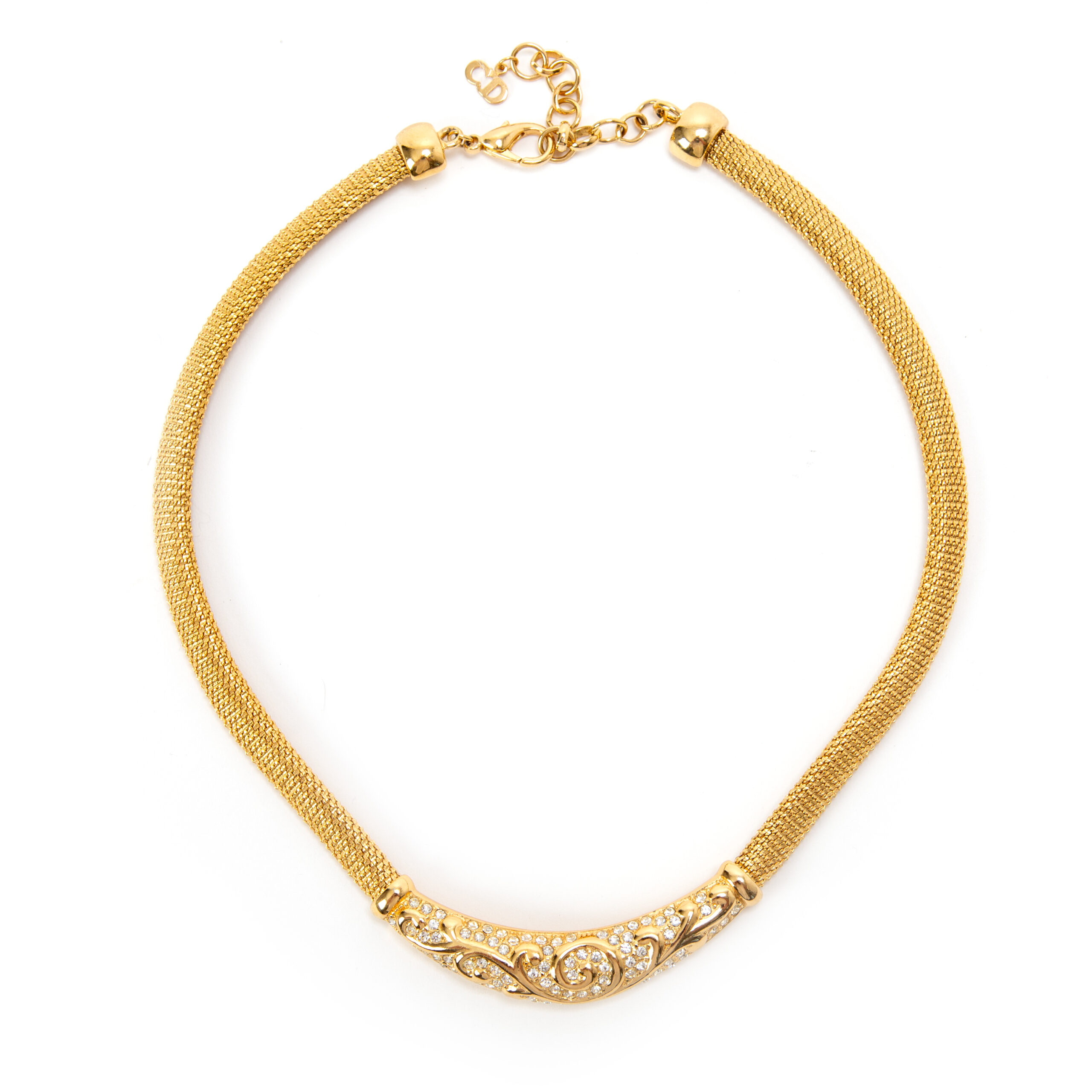 This vintage Christian Dior necklace is a stunning piece of jewelry that is sure to catch the eye. The gold-tone link chain and choker style give it a classic and timeless look that can be worn on any occasion. The necklace is perfect for those who appreciate the fine art of jewelry and want to add a touch of vintage flair to their collection.