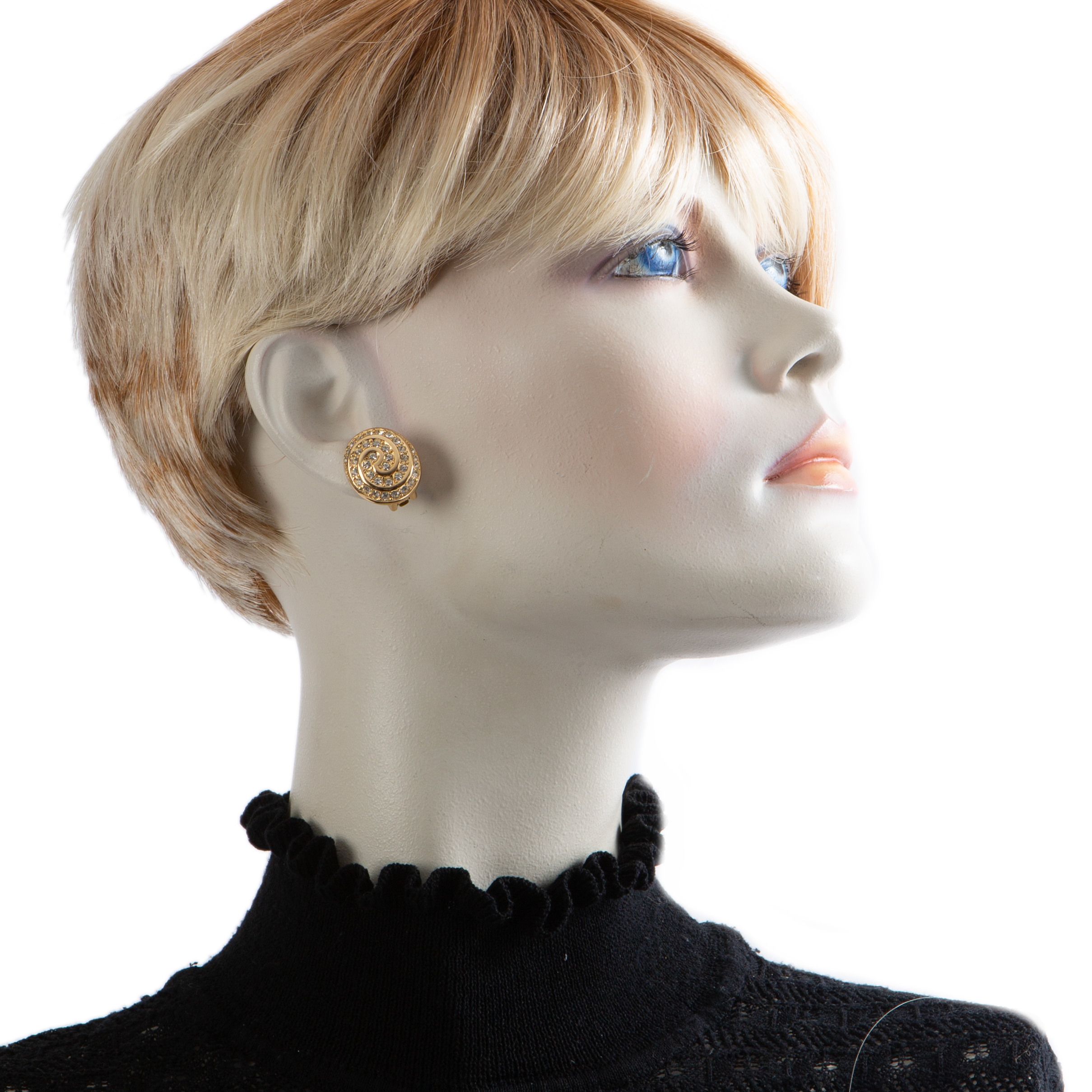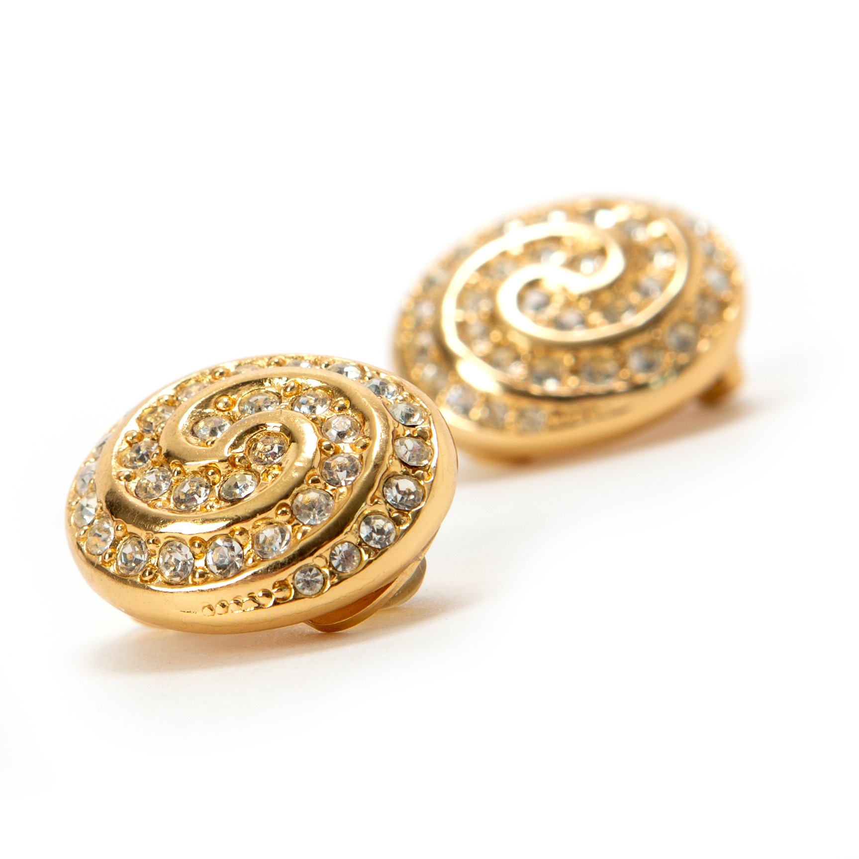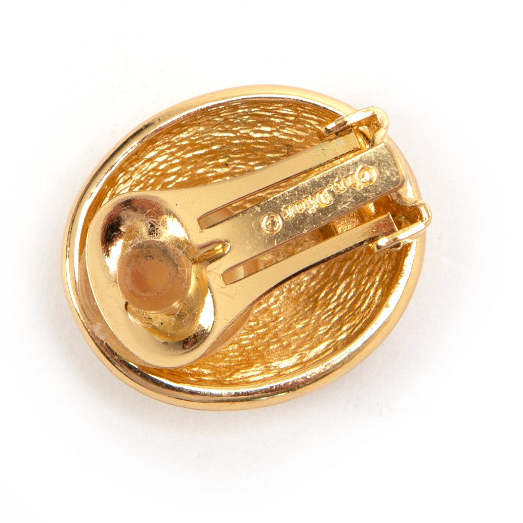 Gold-tone clip-on earrings from Christian Dior Vintage. Featuring chrystal glass stones in gold tone metal color in a slight oval shape.