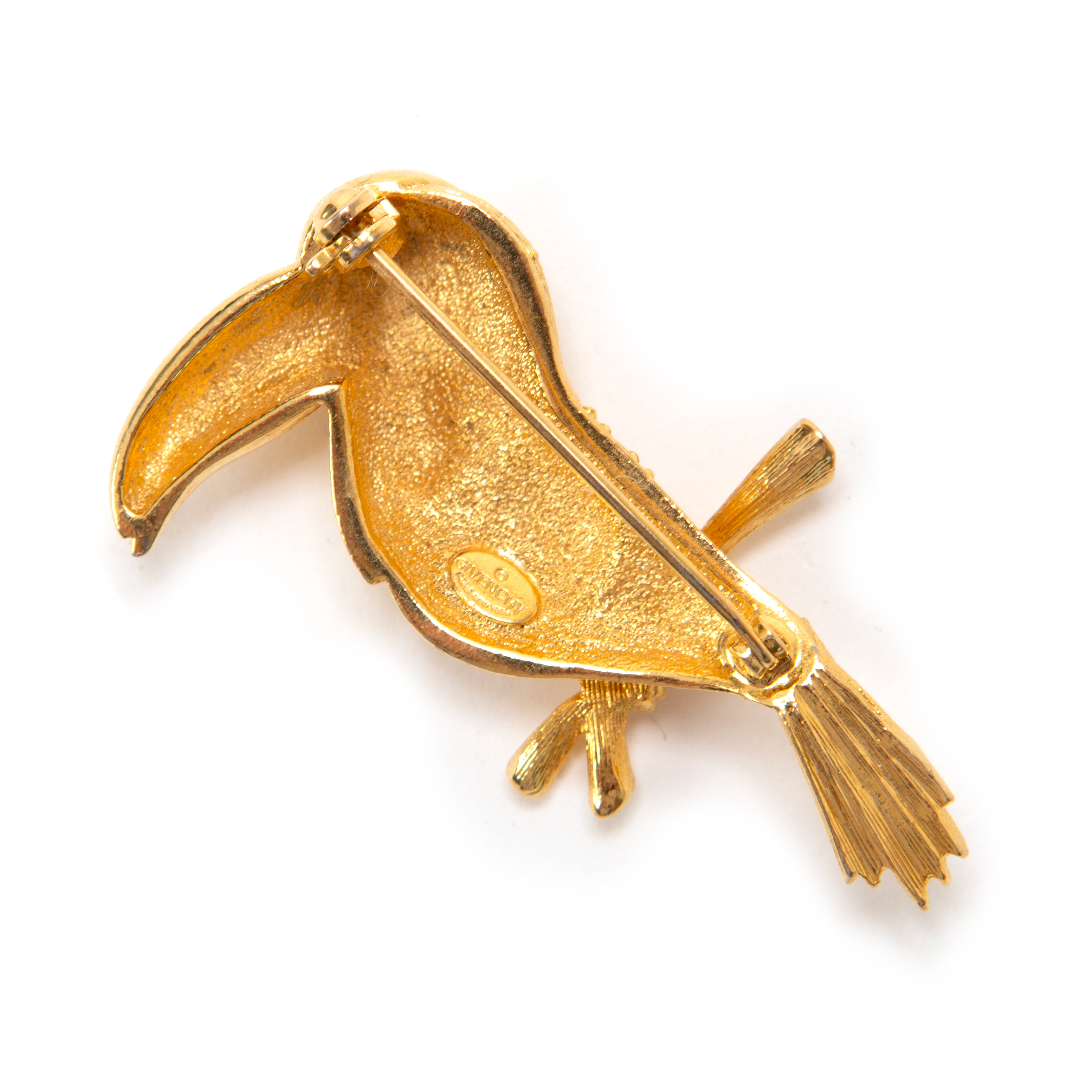 Vintage Givenchy gold-tone bird brooch. Authenticity mark at the back of the pin.