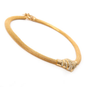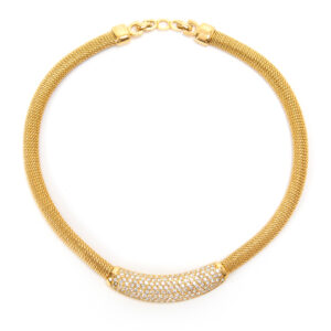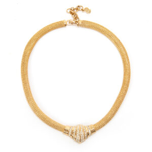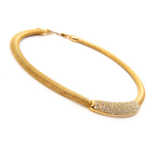 This vintage Christian Dior necklace is a stunning piece of jewelry that is sure to catch the eye. The gold-tone link chain and choker style give it a classic and timeless look that can be worn on any occasion. The necklace is perfect for those who appreciate the fine art of jewelry and want to add a touch of vintage flair to their collection. The brand, Dior, is synonymous with quality and luxury, making this necklace a must-have for any jewelry enthusiast. No missing or dark stones; neither discoloration. Branded Chr. Dior at the charm hanging from fold over closure. Size: 44 cm length including 7 cm extender (mind necklace is flexible) branded fold over clasp works properly. Comes with non branded box. Our products are 100% genuine & authentic Chr. Dior. In some cases we purchase merchandise from trusted independent suppliers and not directly from the brand owner. In all cases we stand by the authenticity of every product sold on this site.