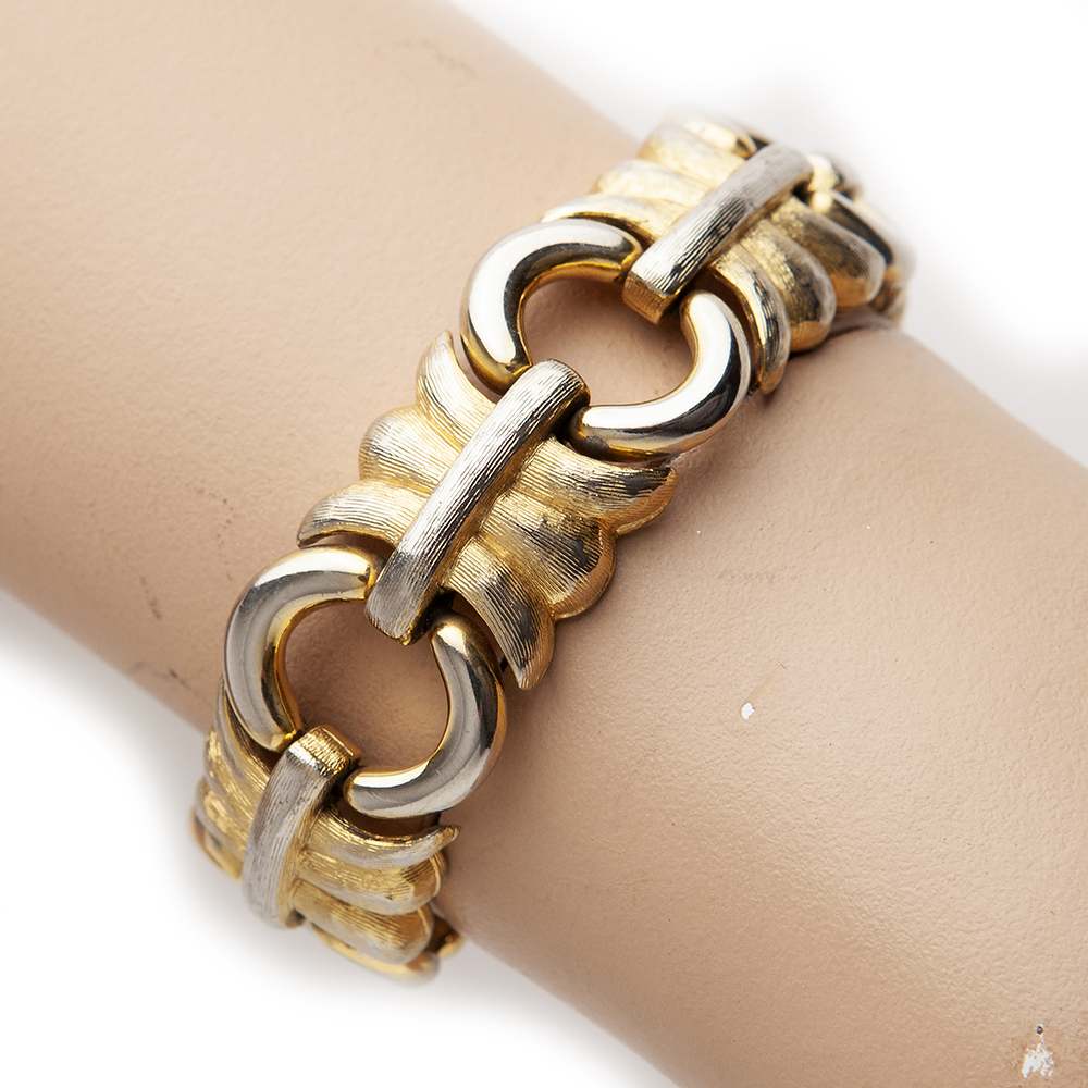 Vintage Gold-tone metal chain bracelet from Givenchy 1980’s – 90’s Vintage featuring decorative links and the closure clasp.