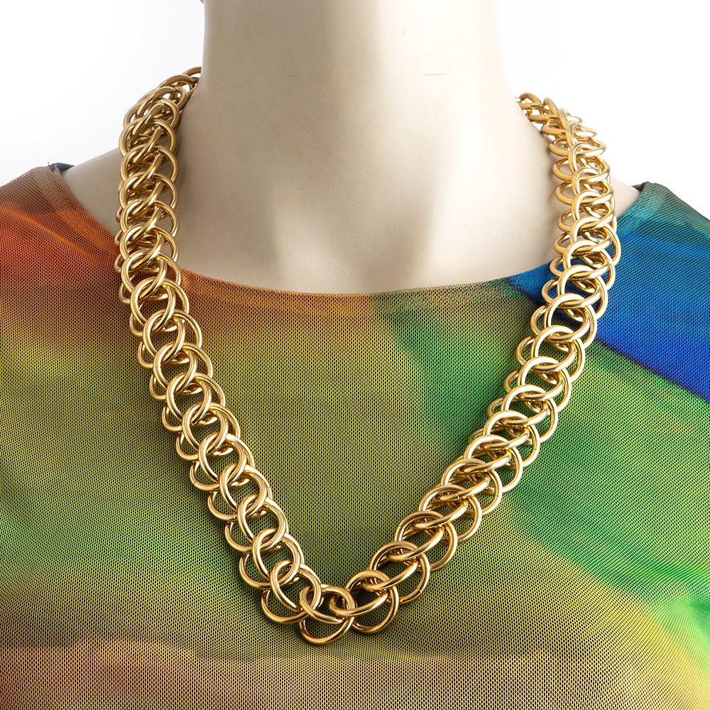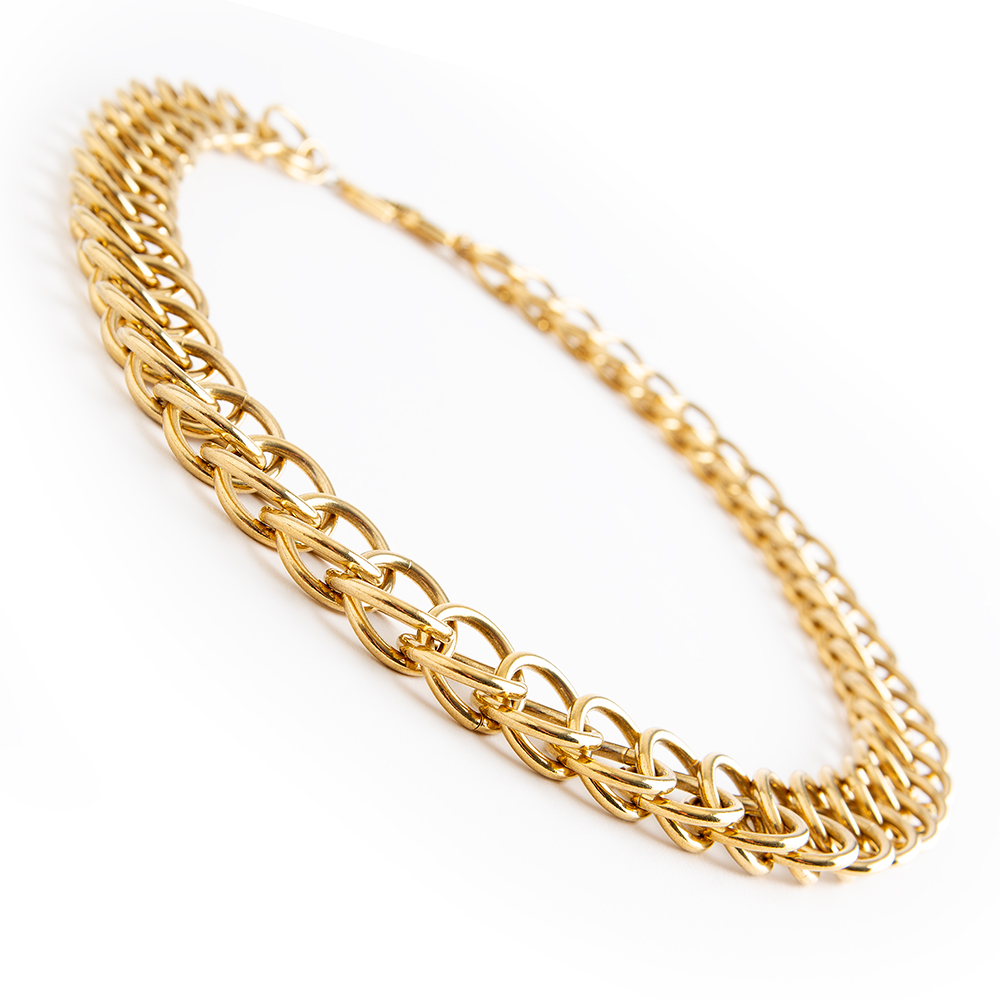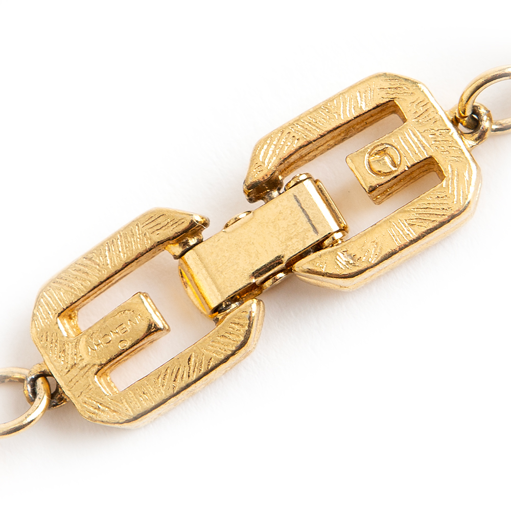 Vintage Gold-tone metal chain link necklace from Givenchy 1980’s – 1990’s Vintage featuring a round double links and the Givenchy trademark engraved on the clasp.