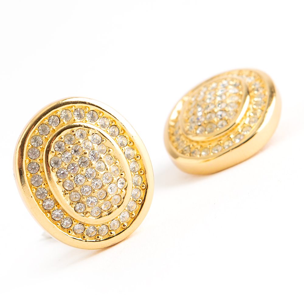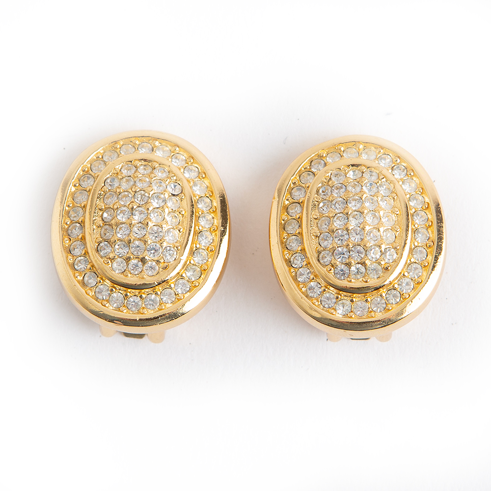 Gold-tone clip-on earrings from Christian Dior Vintage. Featuring chrystal glass stones in gold tone metal color.