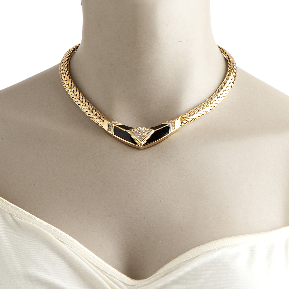 Colors: gold – tone with black and chrystal stones.