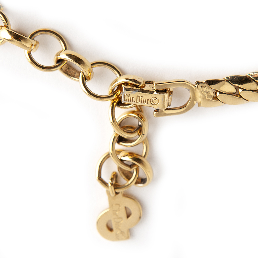 Crafted from gold plated metal in 1980’s – 1990’s, the Dior chain choker features branded fold over fastening, a smooth textured style and an egraved logo.
