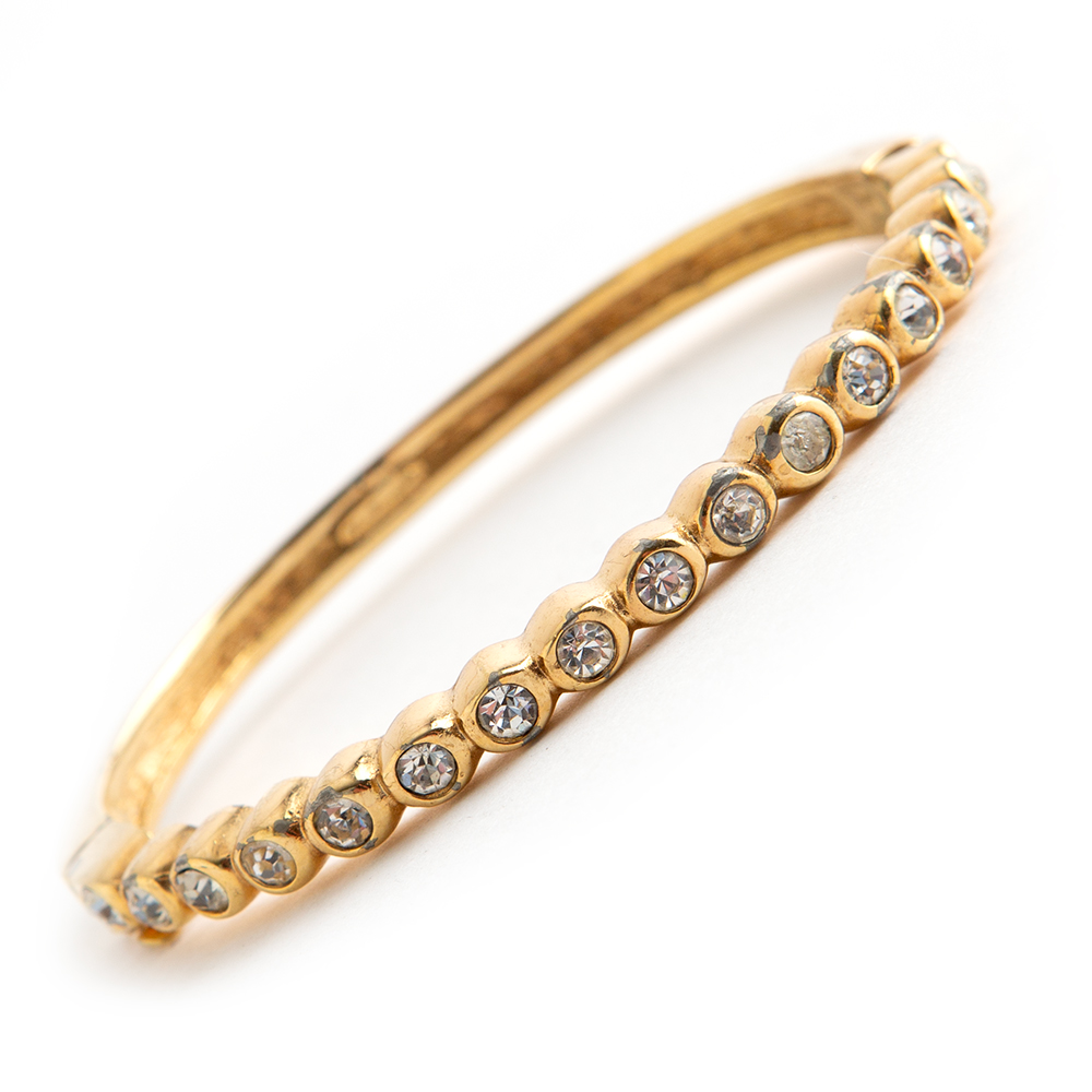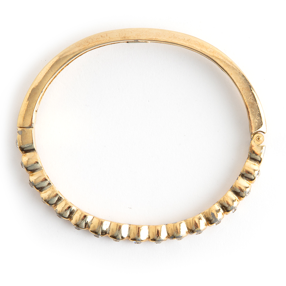 An exquisite design with pave bright chrystal glass stones with the gold tone metal is bright and vibrant and this beauty will light up any outfit! A gorgeous vintage piece!