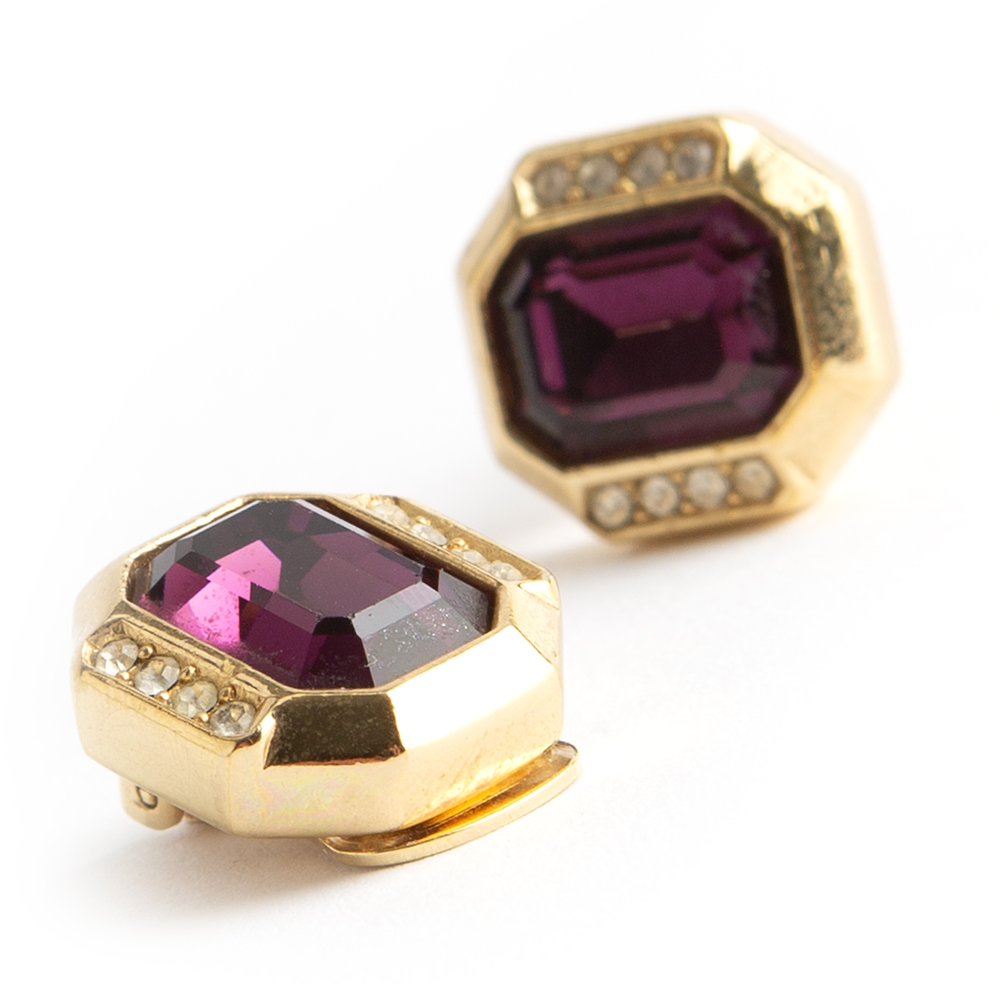 Stunning Christian Dior rich gold tone purple earrings. Beautifully square shaped, made piece of superb quality.