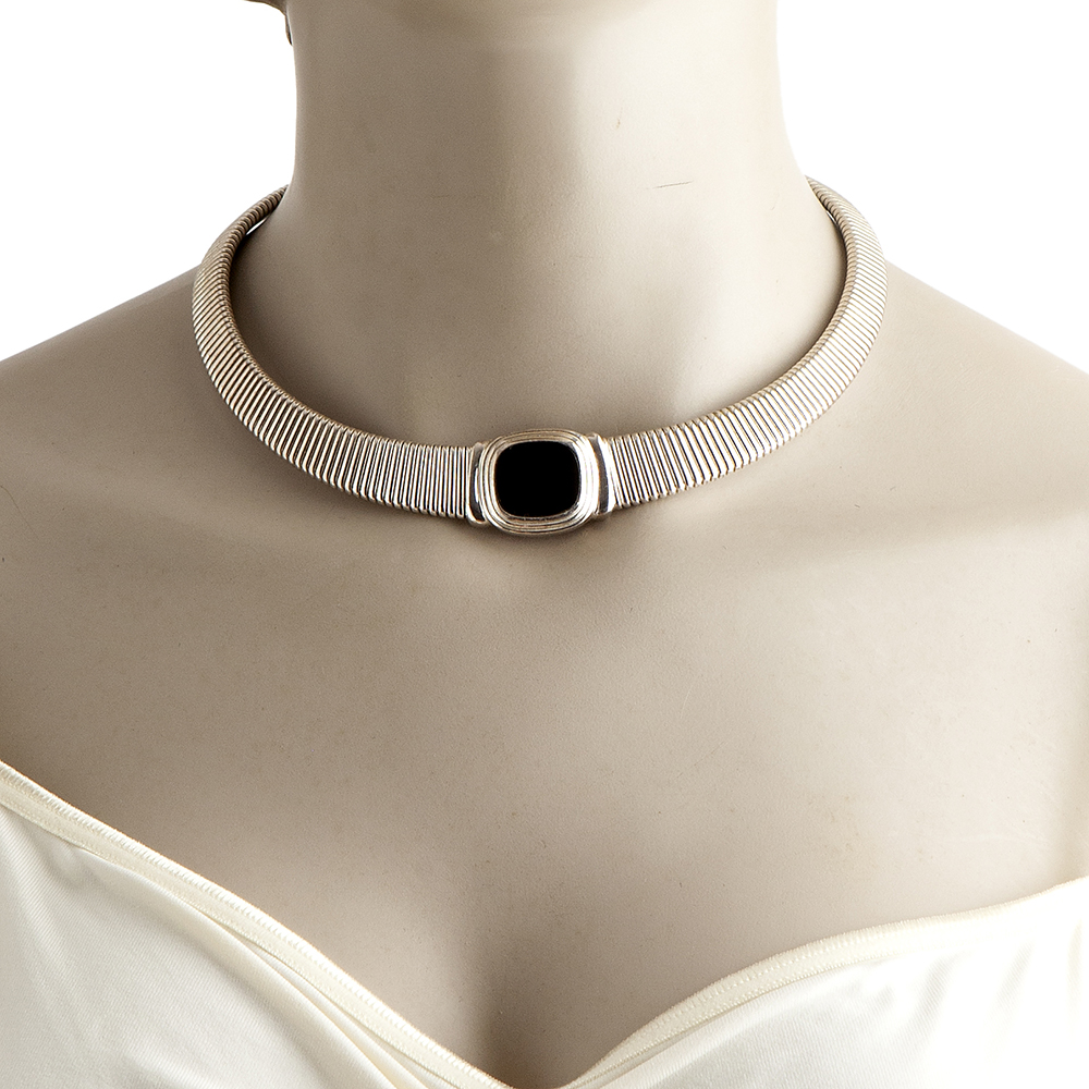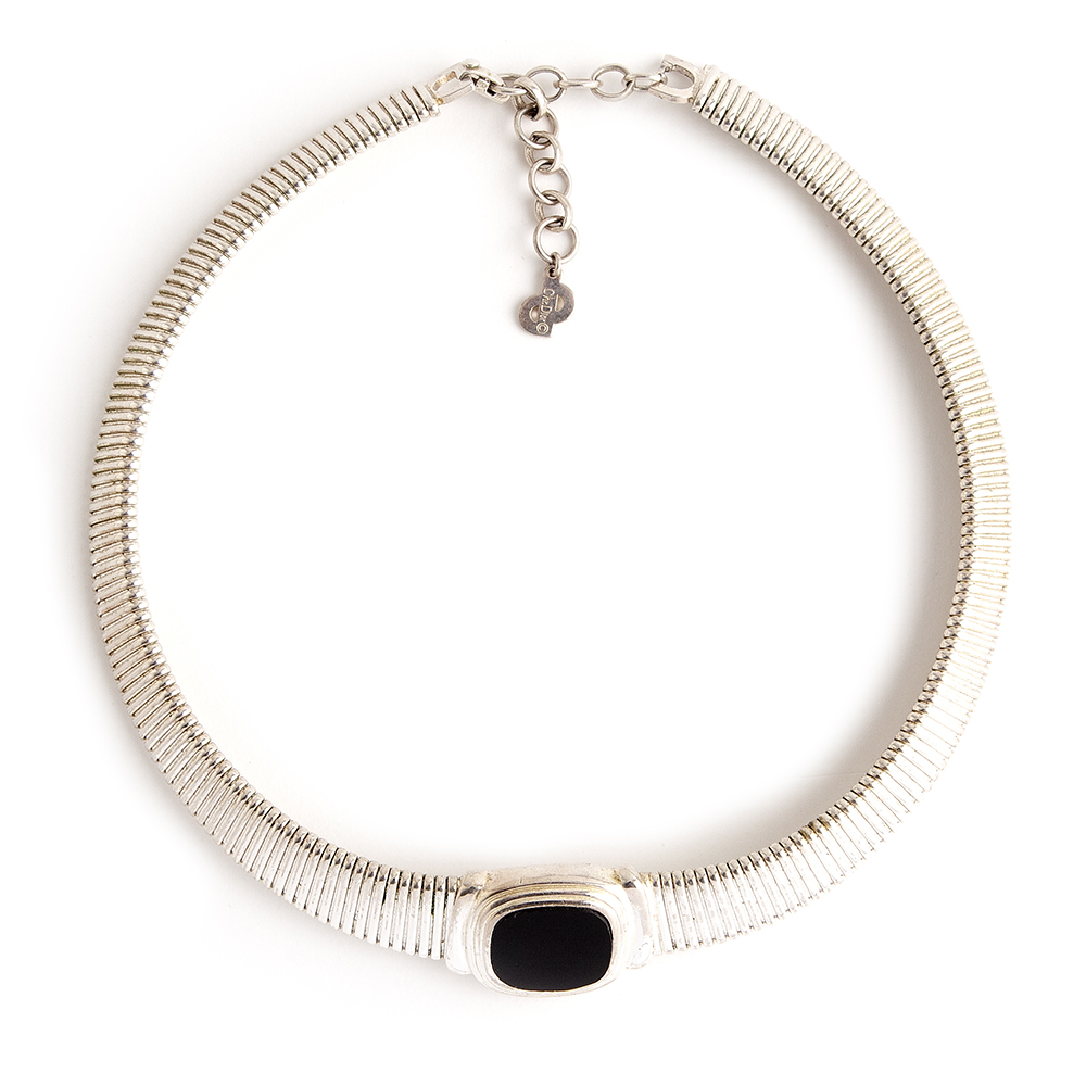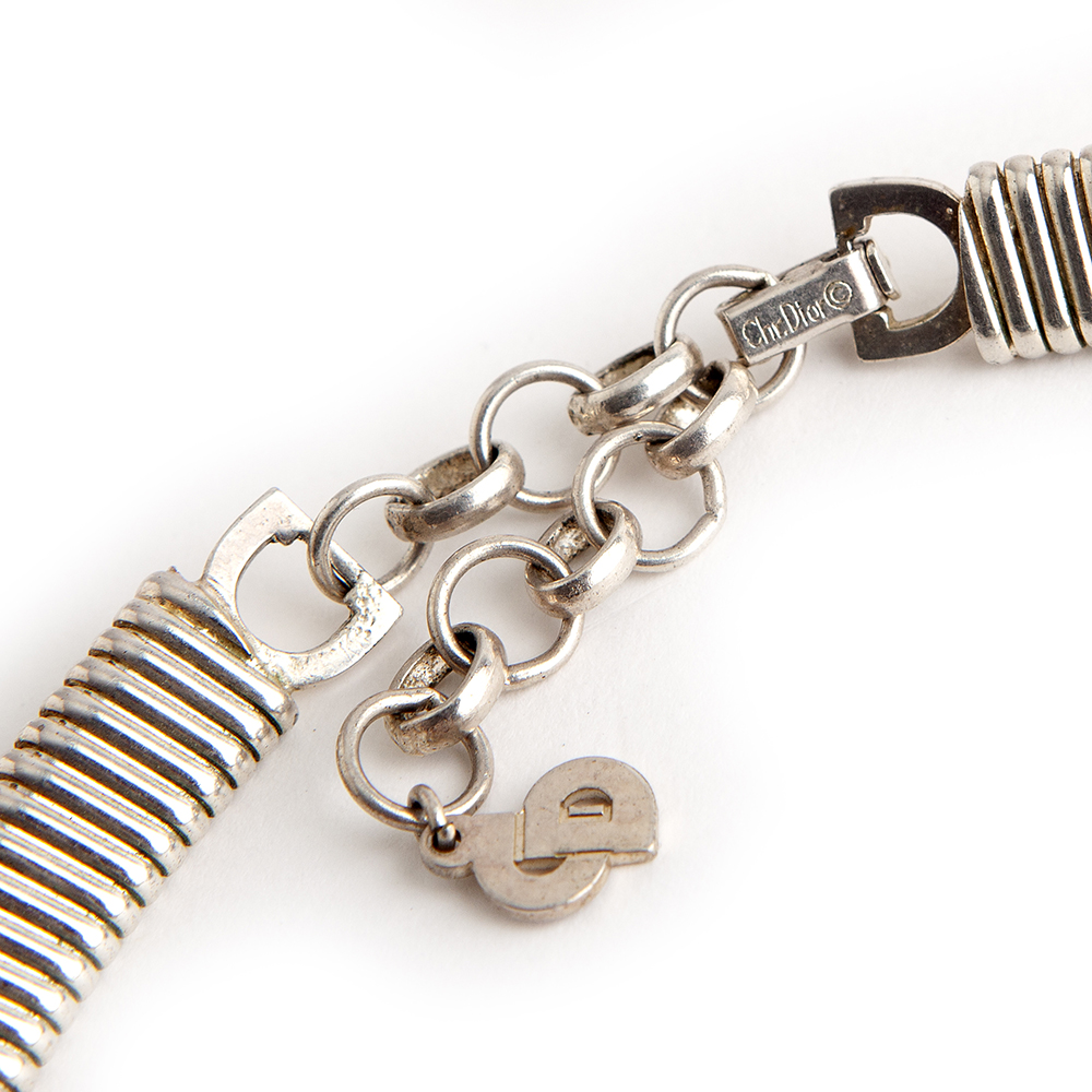 Crafted from silver plated metal in 1980’s – 1990’s, the Dior chain choker features a fold over fastening, a smooth textured style and an engraved logo.
