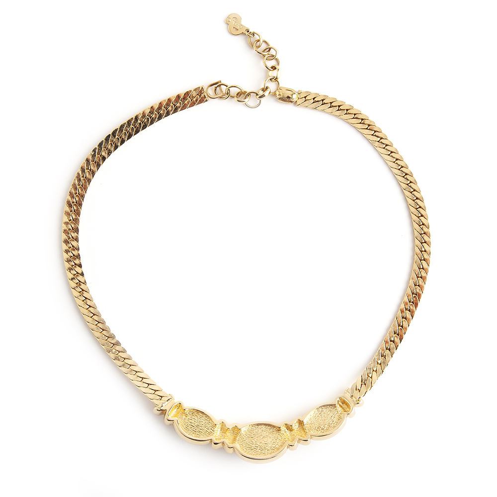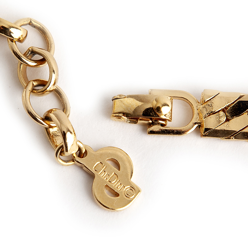 Crafted from gold plated metal in 1980’s – 1990’s, the Dior chain choker features a hook & eye fastening, a smooth textured style and an embossed logo.