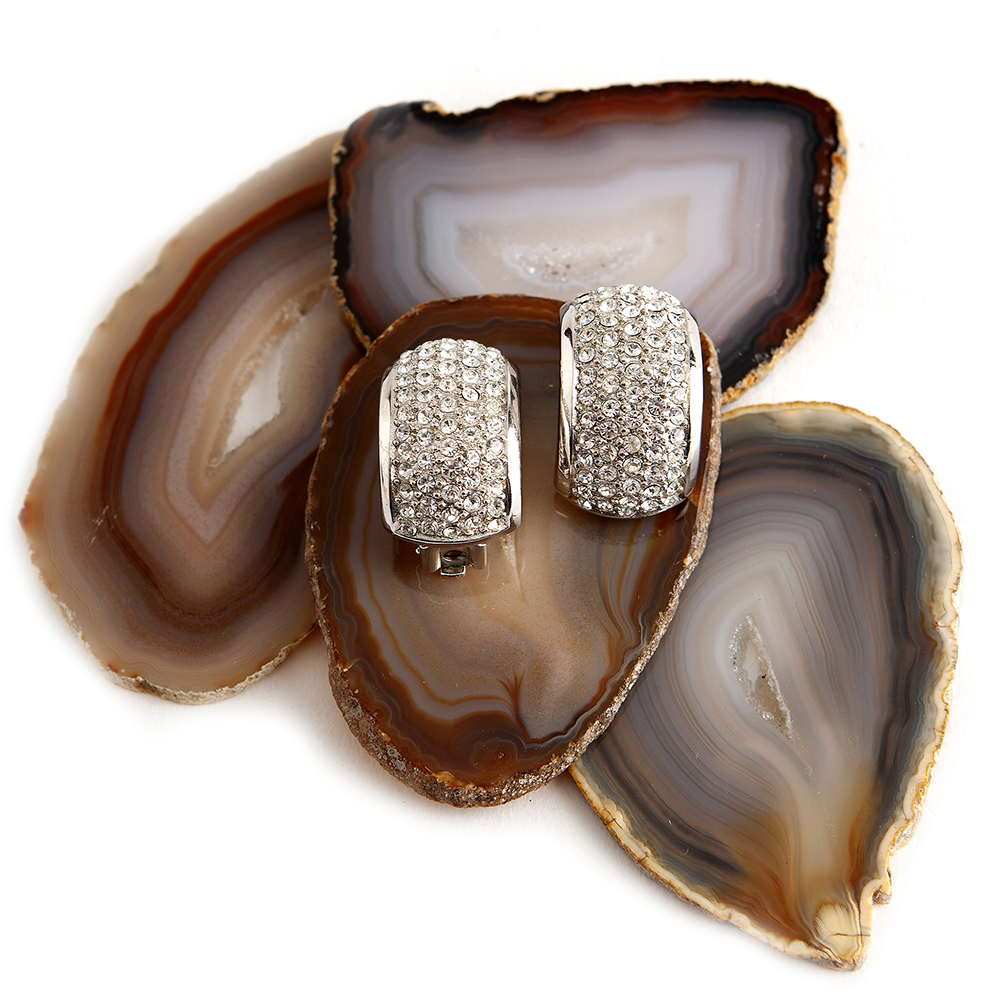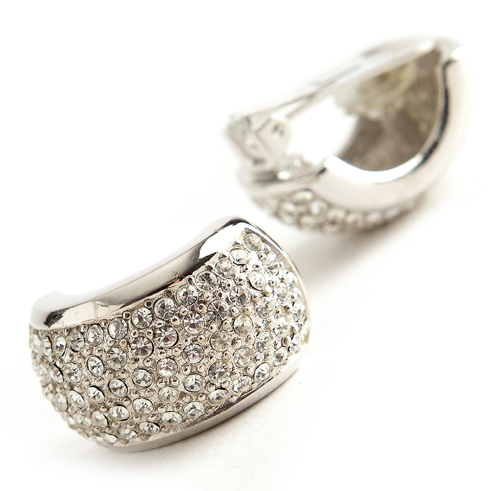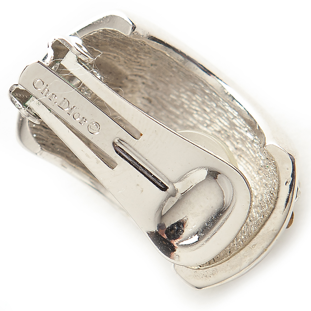 Vintage silver-tone clip-on earrings from Christian Dior Vintage. Featuring crystals in silver tone brass. Authenticity mark branded on the back of each earring. Clips with excellent tension.