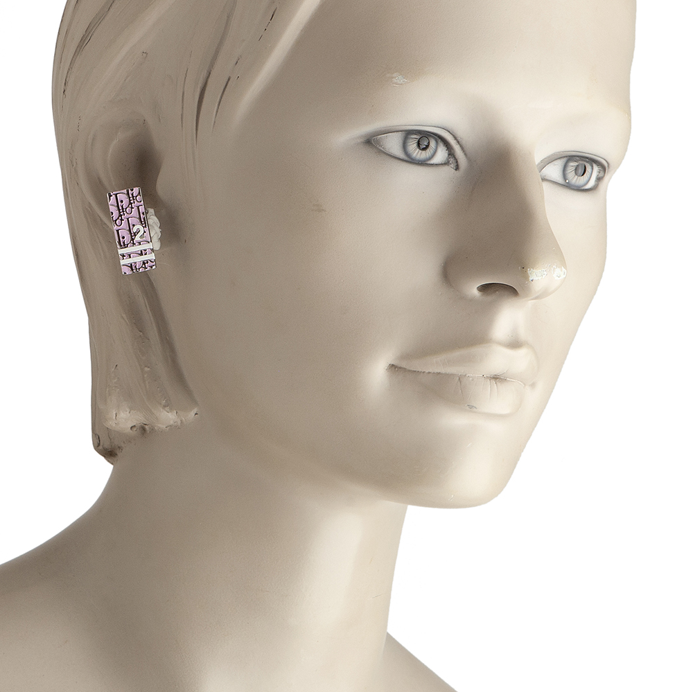 Crafted from silver toned metal these allover Pink printed earrings by Christian Dior can be worn on any occasion.