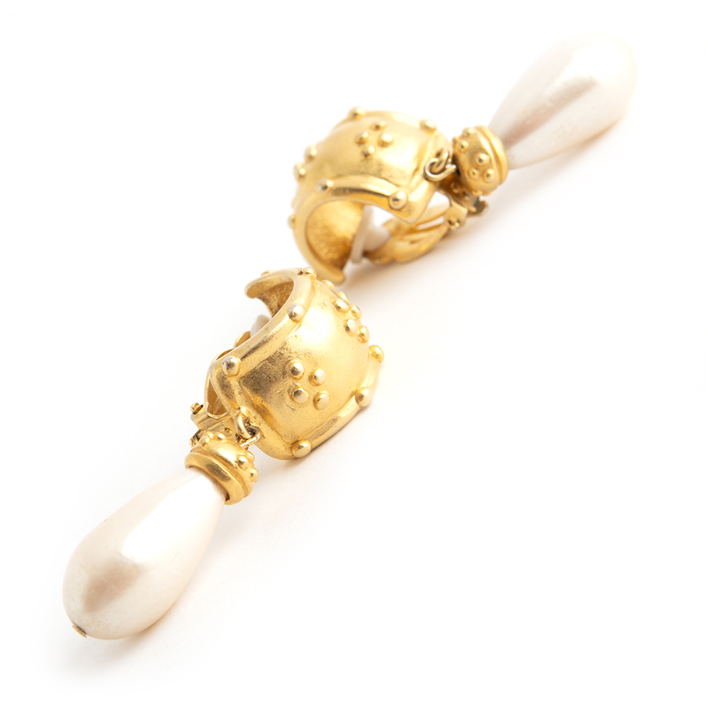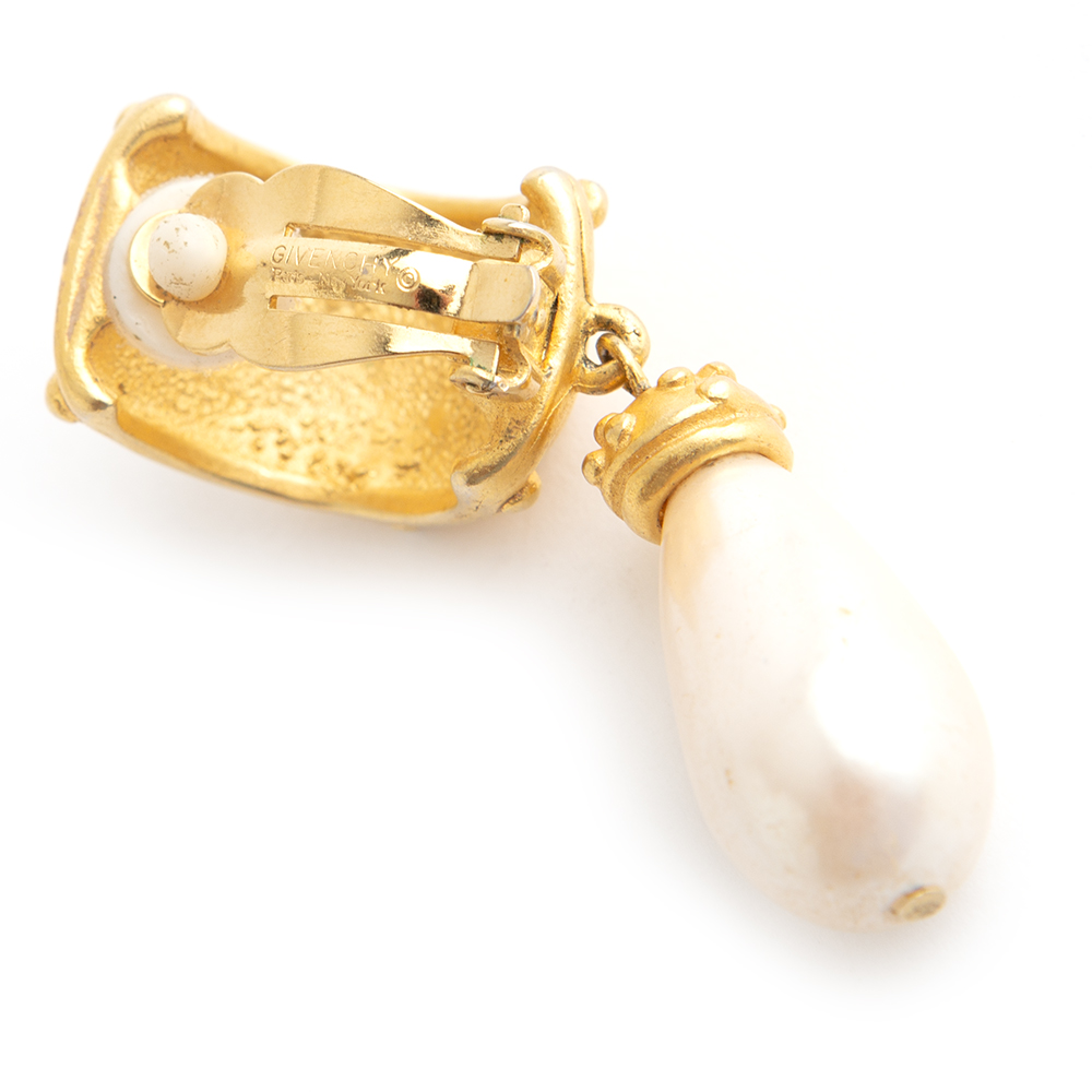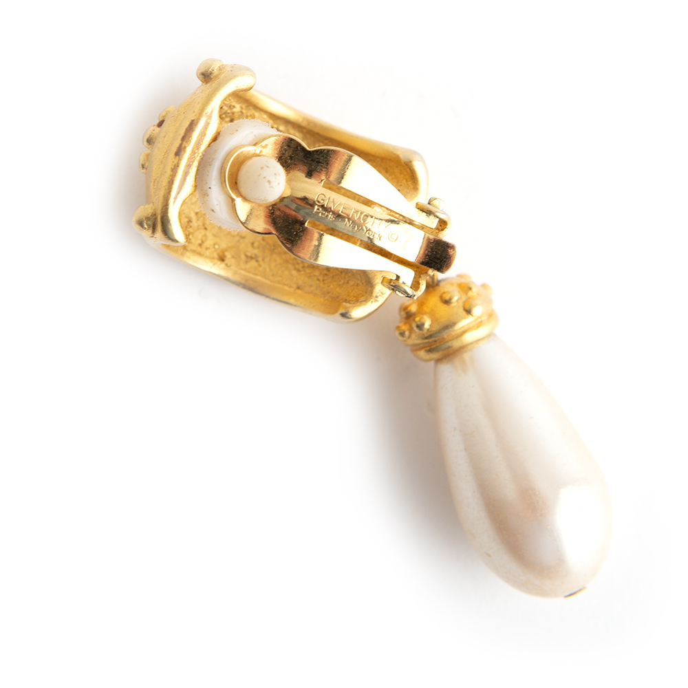 These are fabulous faux pearl dangle shaped 1980’s – 1990’s clip-on earrings from Givenchy.