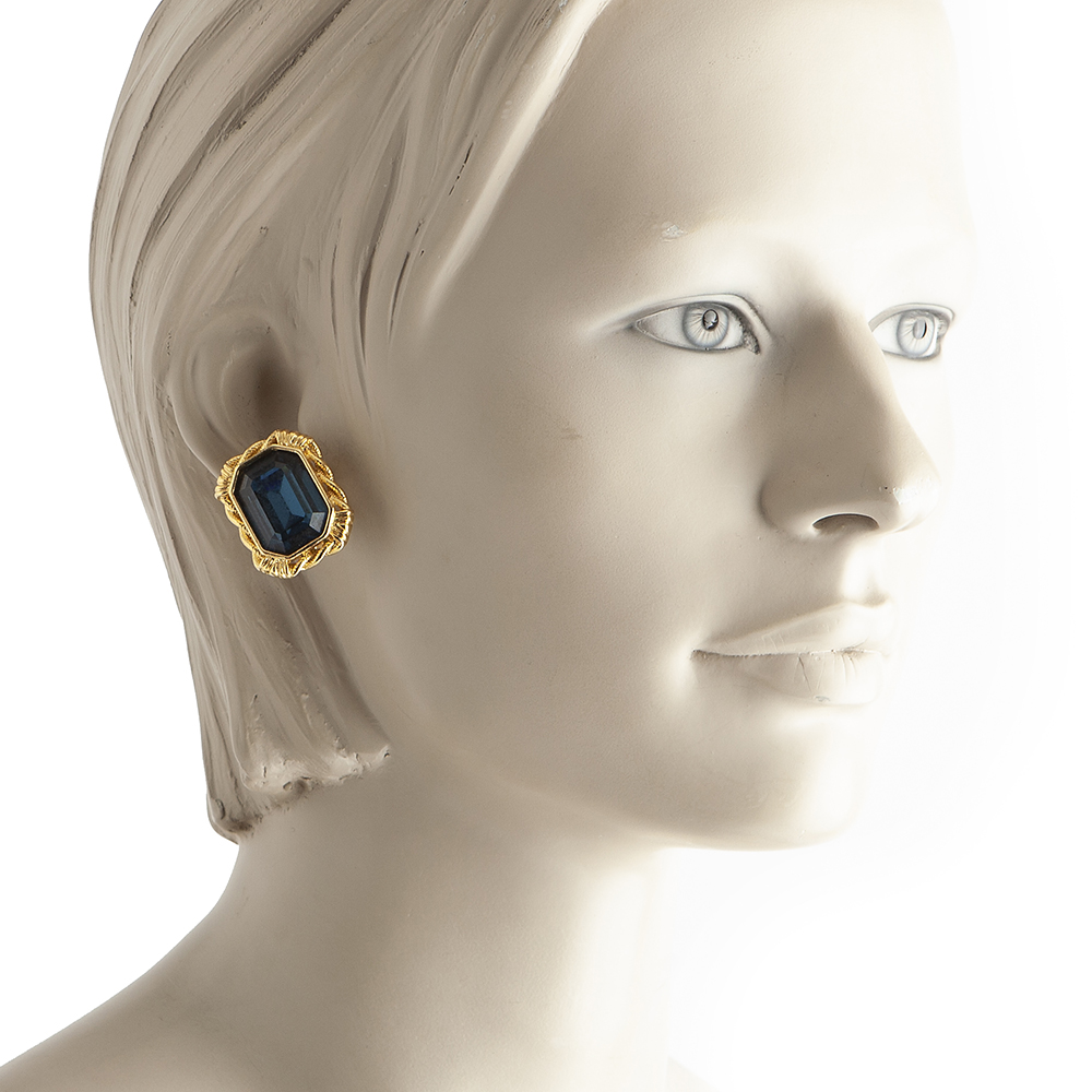 Crafted from gold toned metal these dark blue glass chrystal clip on construction earrings by Givenchy can be worn on any occasion.