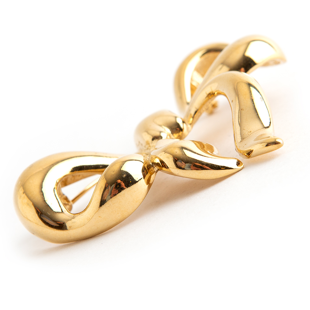 Gold tone bow pin by vintage Givenchy. Authenticity mark branded in the back of the pin.