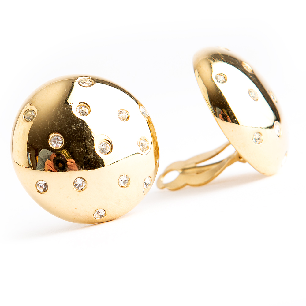 This pair of Givenchy clip on earrings are in excellent pre-owned condition, the gold finish is uniform and bright. It appears in all respects as brand new. All stones are present.