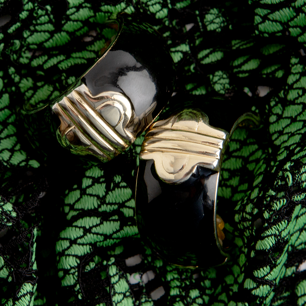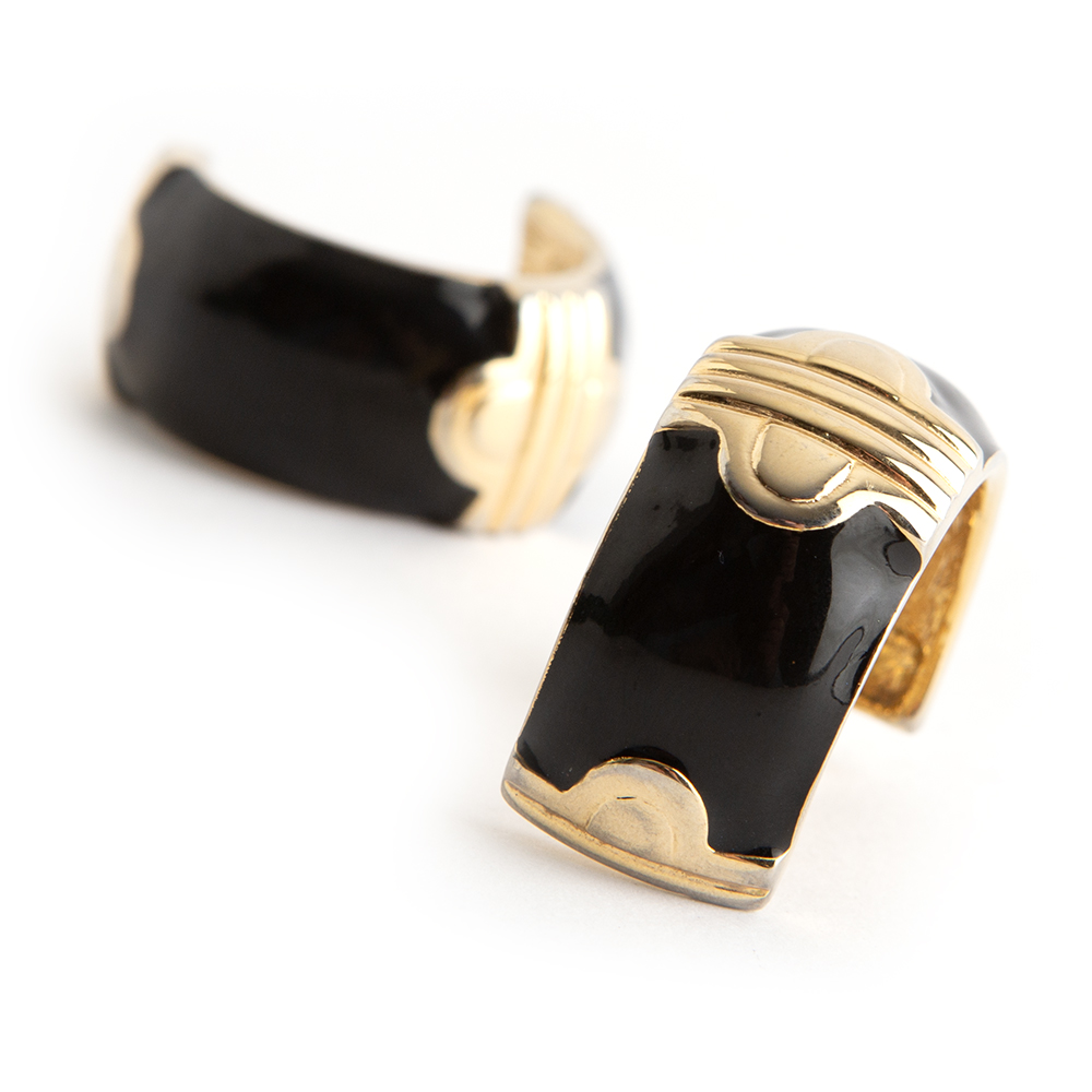 Crafted from matte gold toned and black enamel half hoop shape with clip on construction earrings by Givenchy can be worn on any occasion.