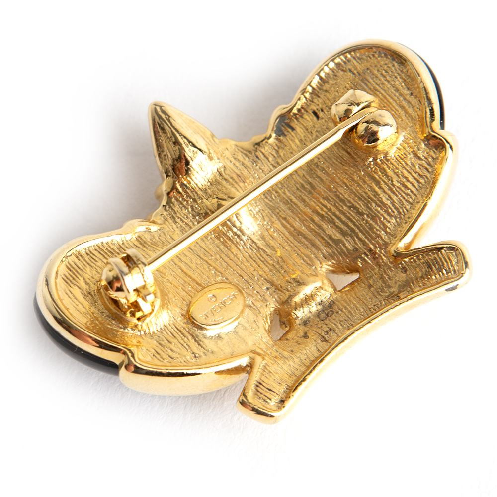 Add a lavishing touch to your garment with this cute crown black brooch from vintage Givenchy.
