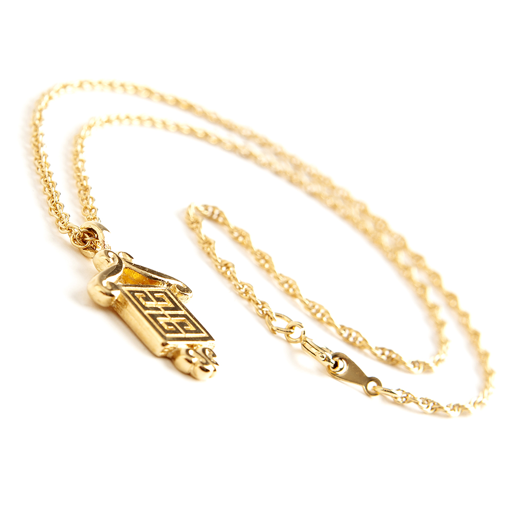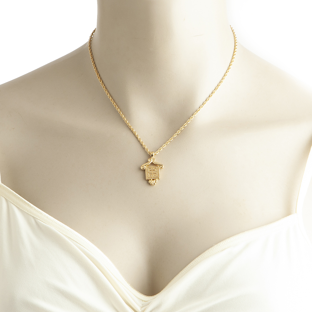 Vintage and authentic Givenchy necklace in plated gold tone. Features a Givenchy square logo design and a authenticity mark at the back.