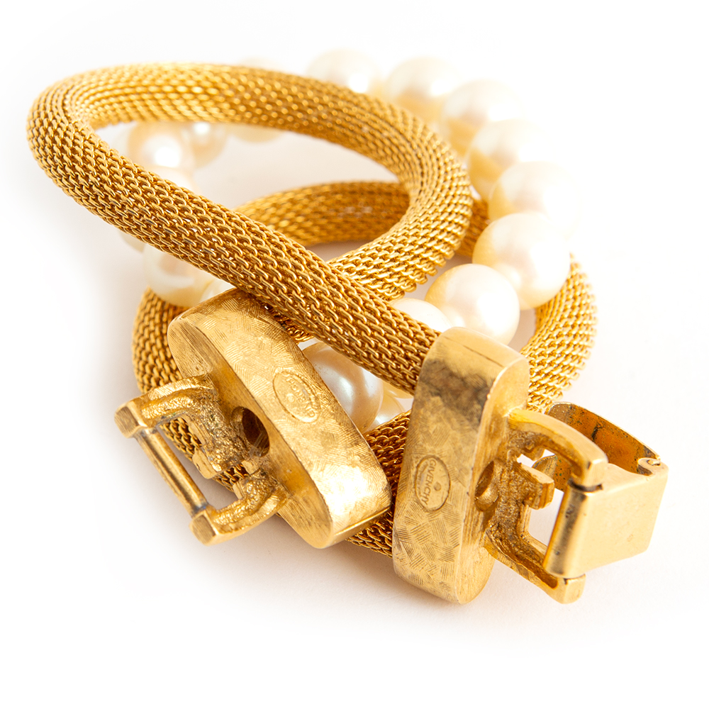 Vintage gold-tone metal bracelet with faux pearl bracelet from Givenchy 1980’s – 90’s.