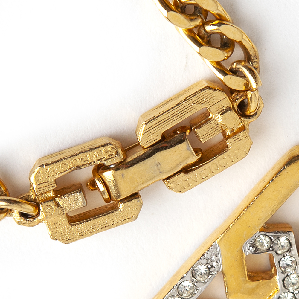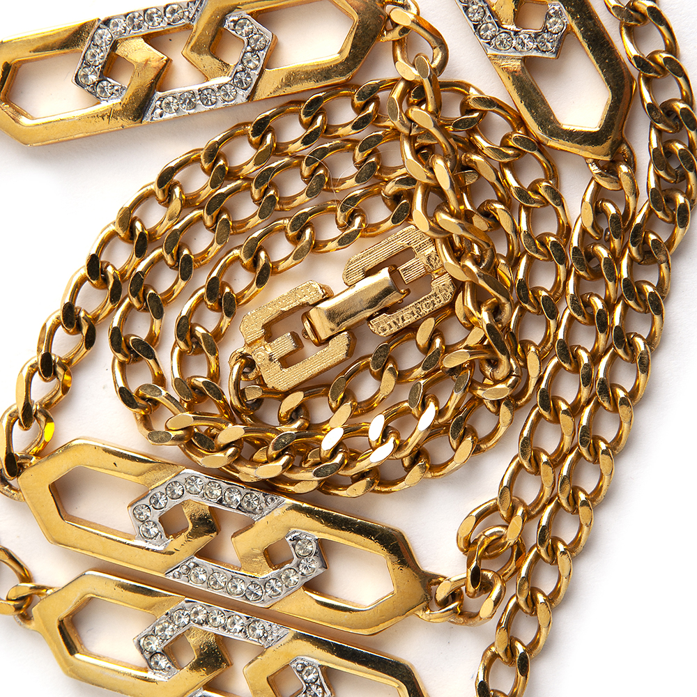 Givenchy!! The name is synonymous with haute couture and understated elegance and this necklace is a testament to the brand and style. The necklace is the perfect length for wearing with a T-shirt, turtle neck, V-shape jumper, blouse or to liven a plain sheath dress. This necklace is in good pre-owned condition, the gold finish is uniform and bright.