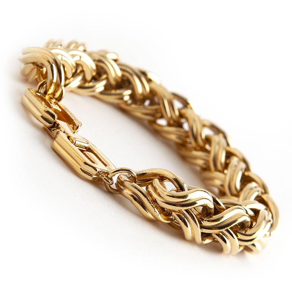 Gold-tone intertwine metal chain bracelet from Givenchy 1980’s -1990’s Vintage featuring a double intertwined links and the Givenchy trademark at the clasp.