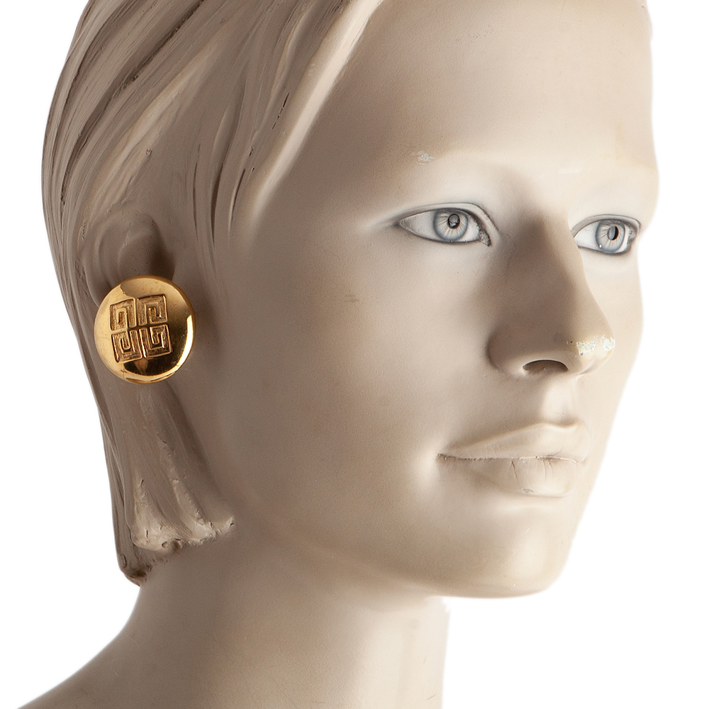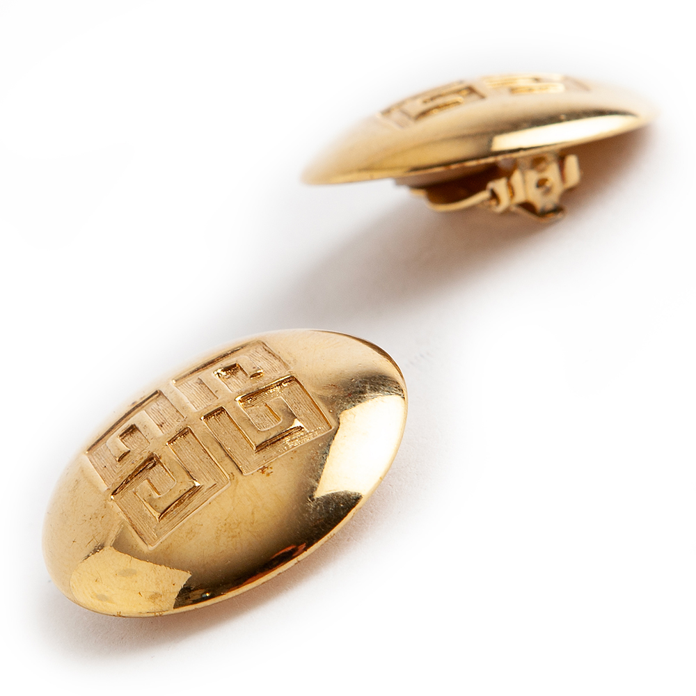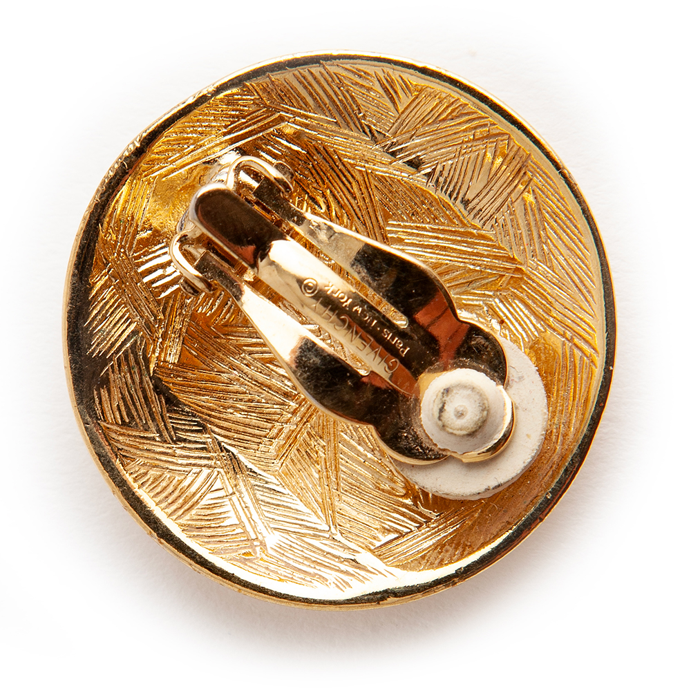 This pair of Givenchy clip on earrings are in excellent pre-owned condition, the gold finish is uniform and bright. It appears in all respects as brand new.