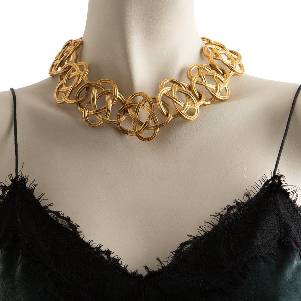 This vintage Givenchy necklace from the 80-90’s is a stunning piece of jewelry that is sure to make a statement. The design features a beautiful combination of matte yellow gold tone metal and a decorative pattern creating a unique and eye-catching look. The necklace is signed by Givenchy, adding an extra touch of authenticity to this vintage piece.