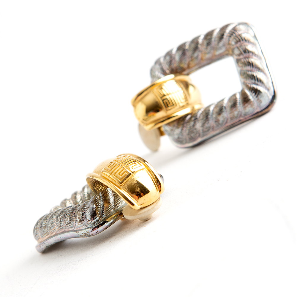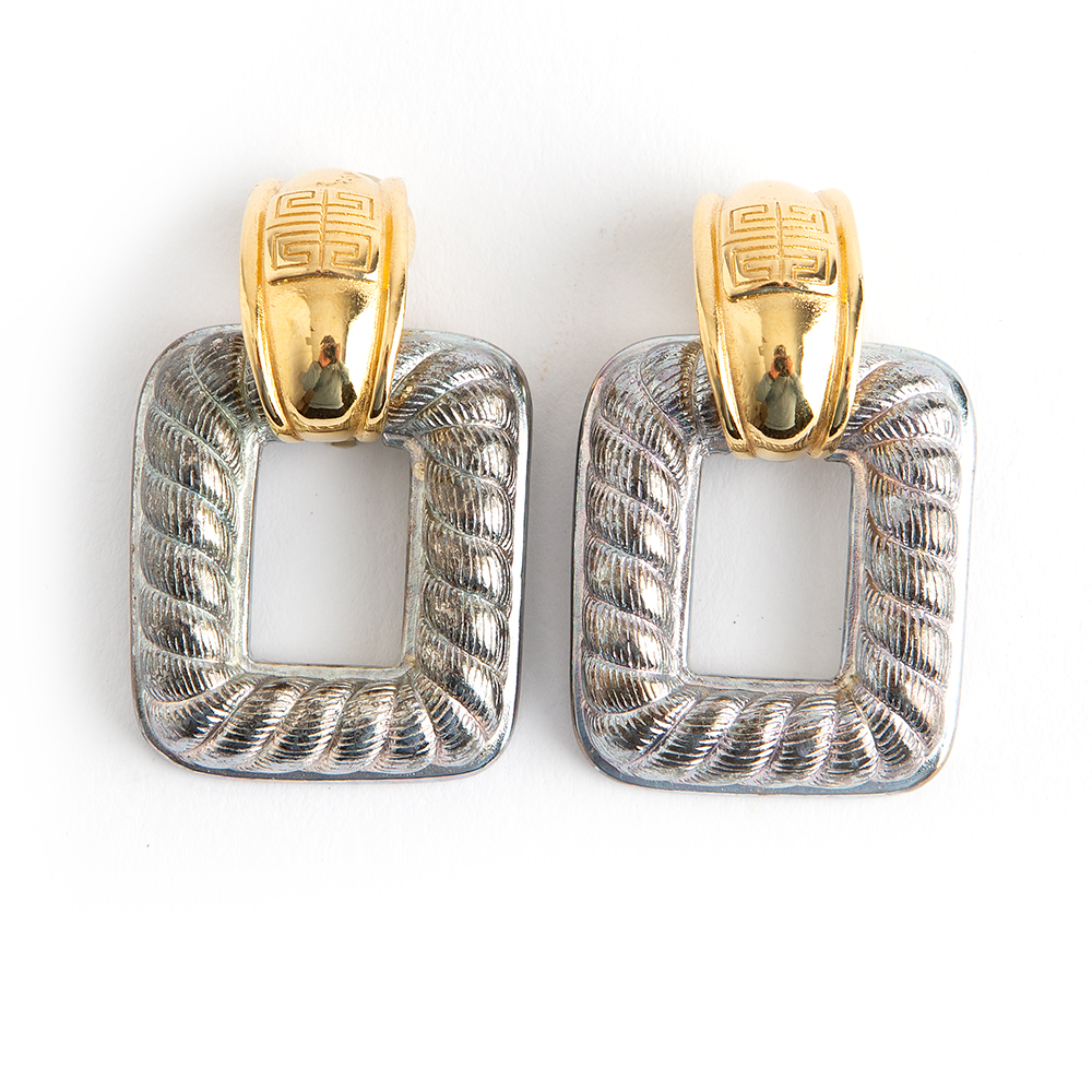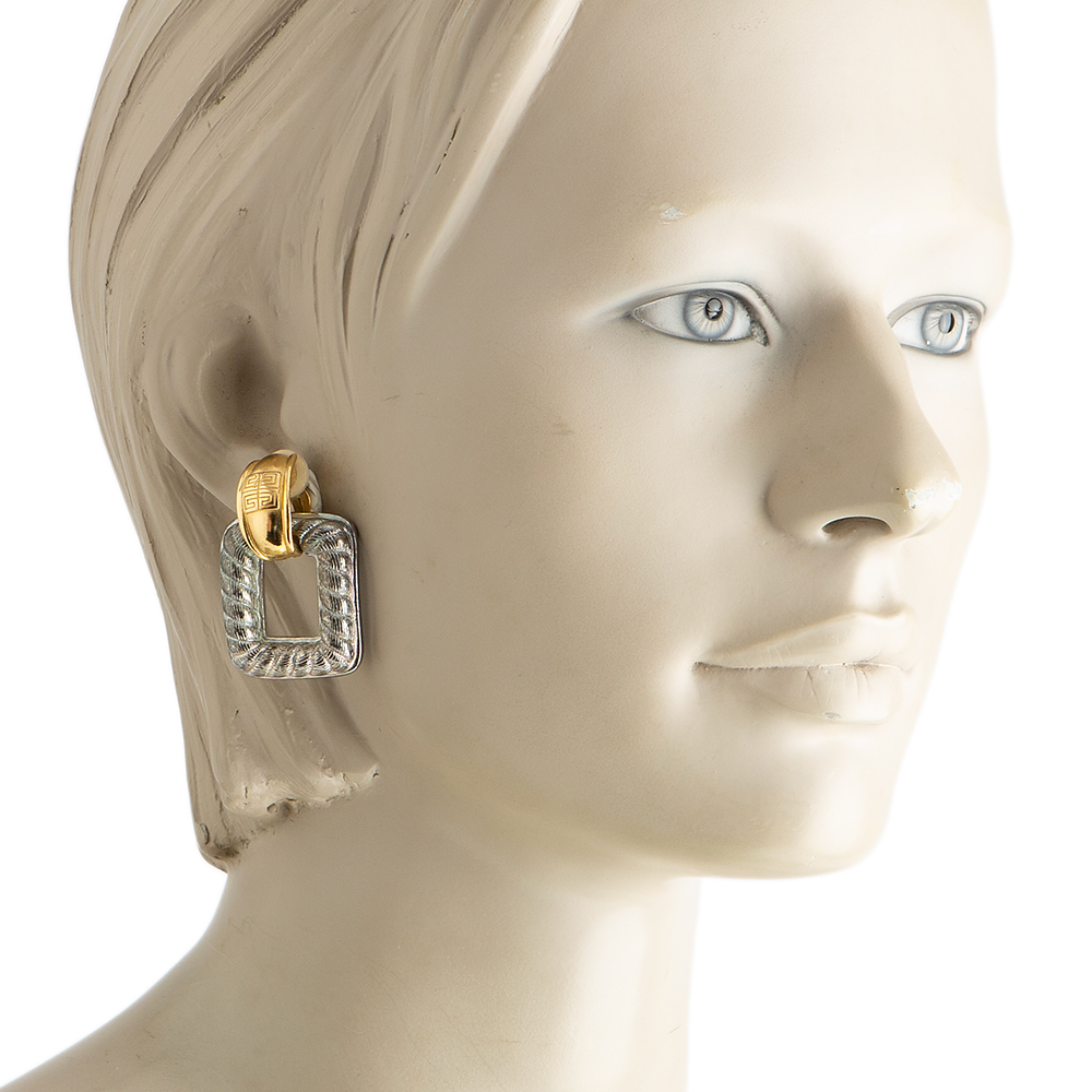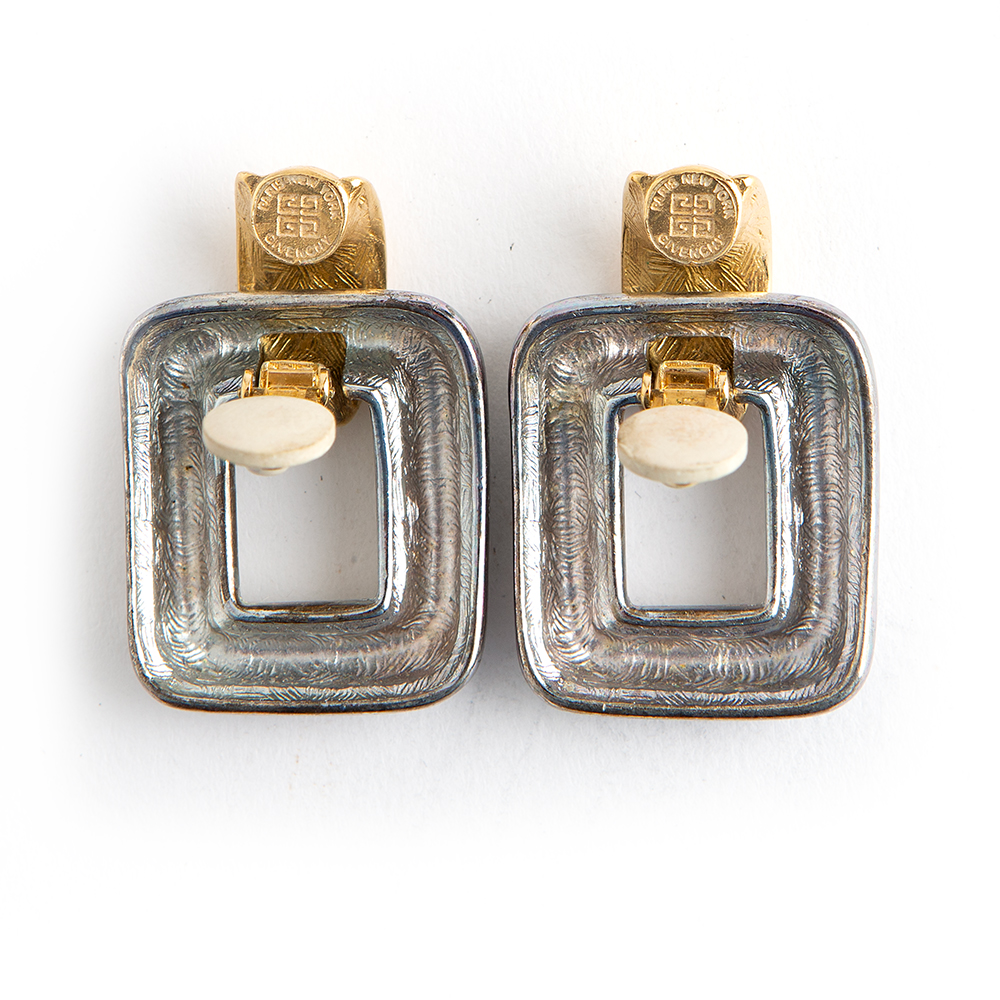 Crafted from matte silver toned doorknocker earrings with clip on construction earrings by Givenchy can be worn on any occasion. Vintage from era 80’s -90’s.