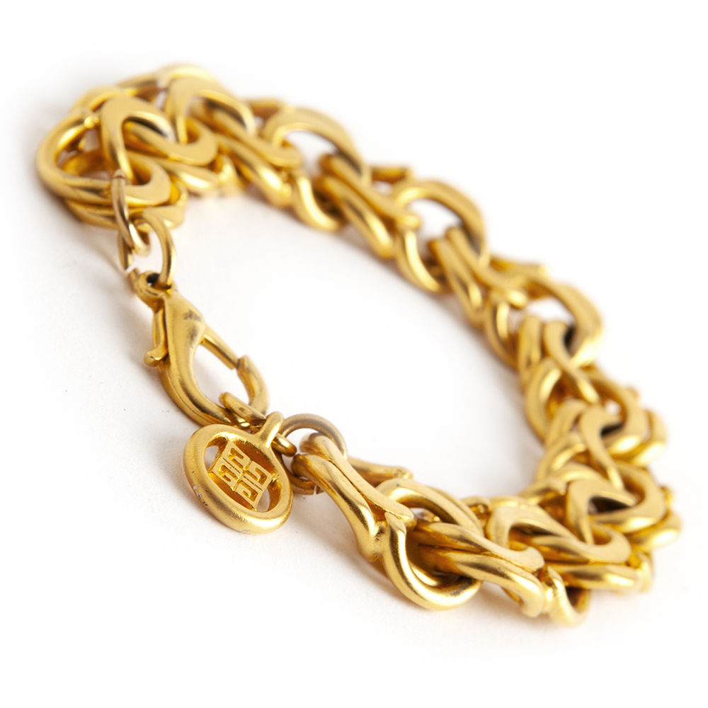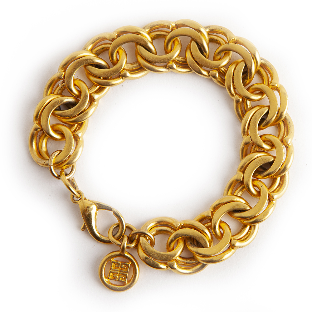 Vintage matte gold-tone metal chain bracelet from Givenchy 1980’s Vintage featuring a double round links and the Givenchy “4G” trademark hanging from the lobster clasp.