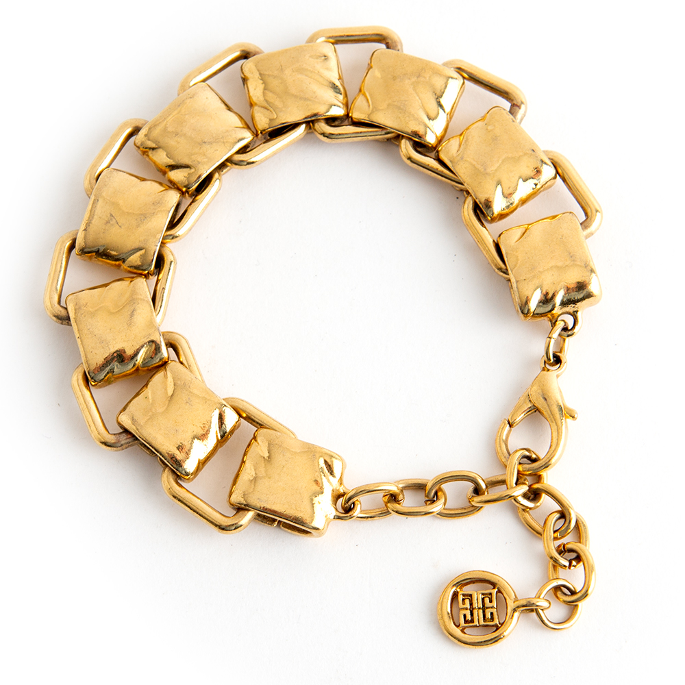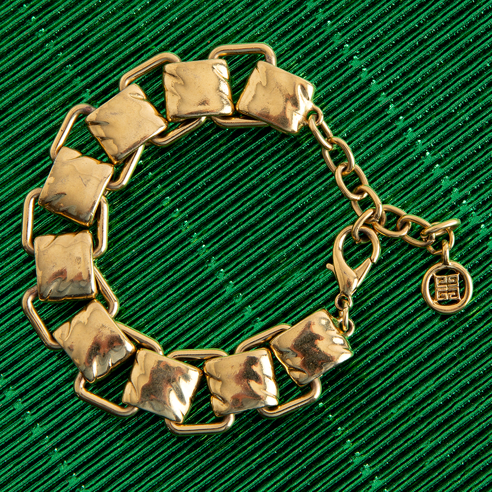 Vintage Gold-tone metal chain bracelet from Givenchy 1980’s – 90’s era – featuring a flat links and the Givenchy trademark hanging from lobster clasp.
