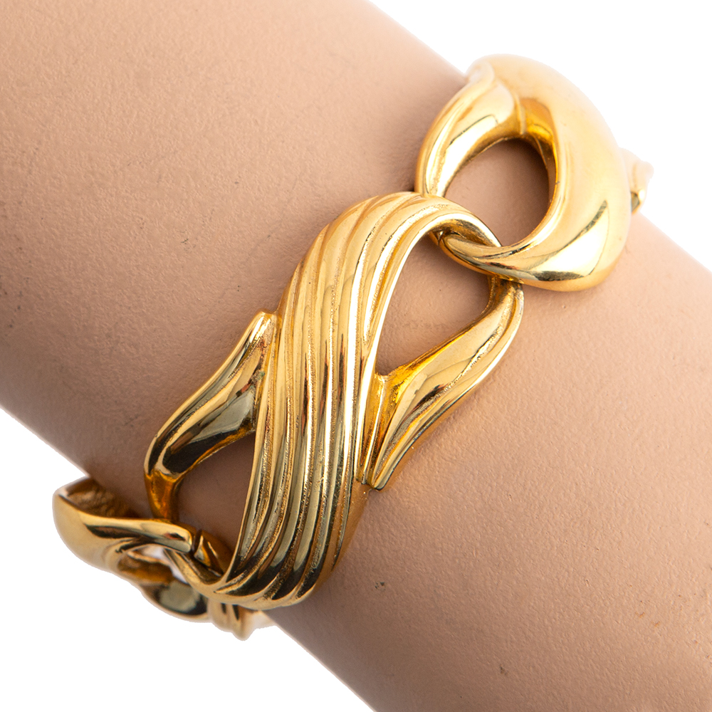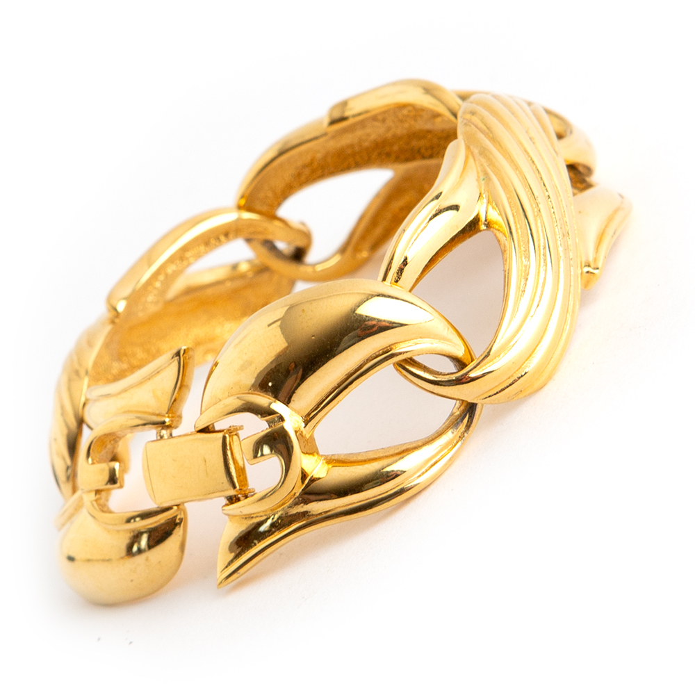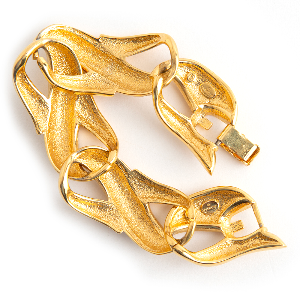 Vintage Gold-tone metal chain bracelet from Givenchy 1980’s – 90’s era – featuring a fancy decorative links and the Givenchy trademark at the inside.