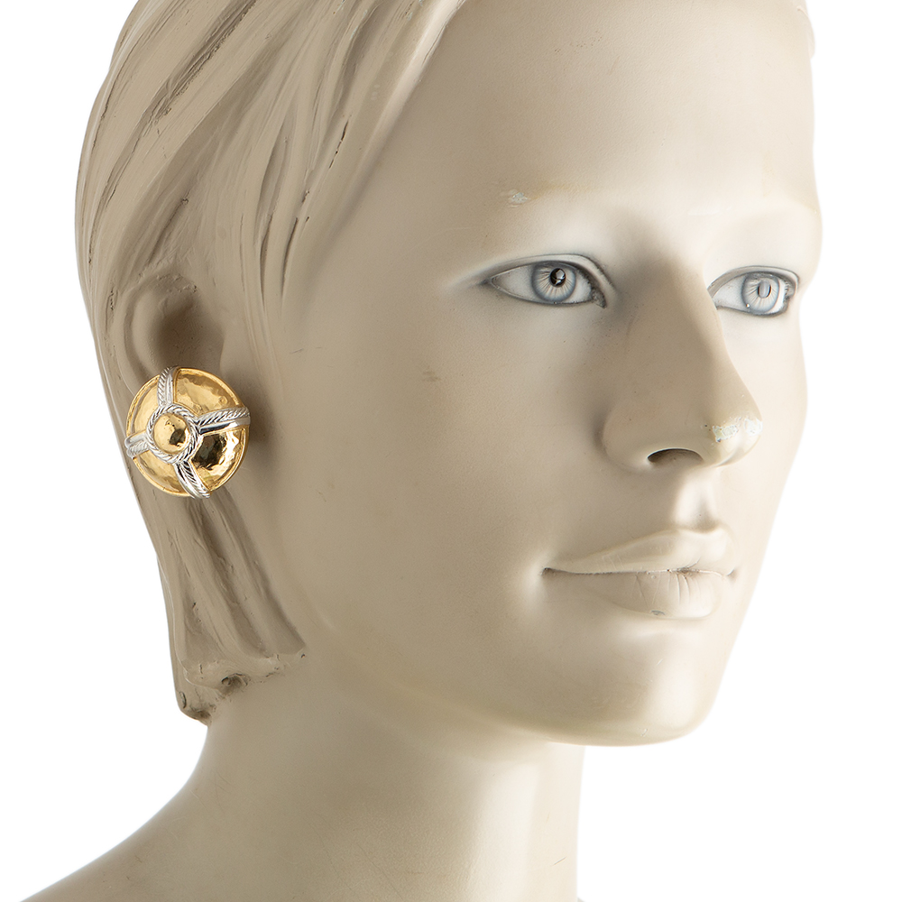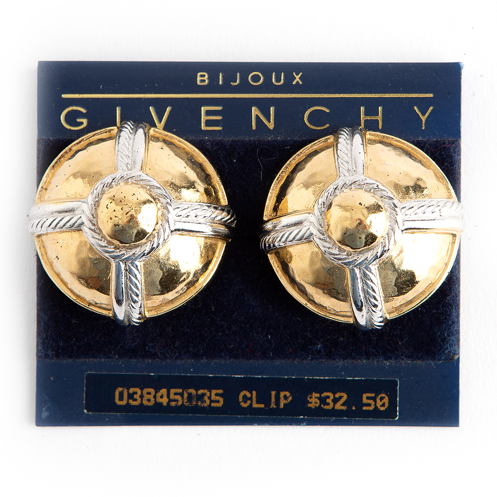 This pair of Givenchy clip on earrings are in excellent pre-owned condition, the gold and silver finish is uniform and bright. It appears in all respects as brand new.
