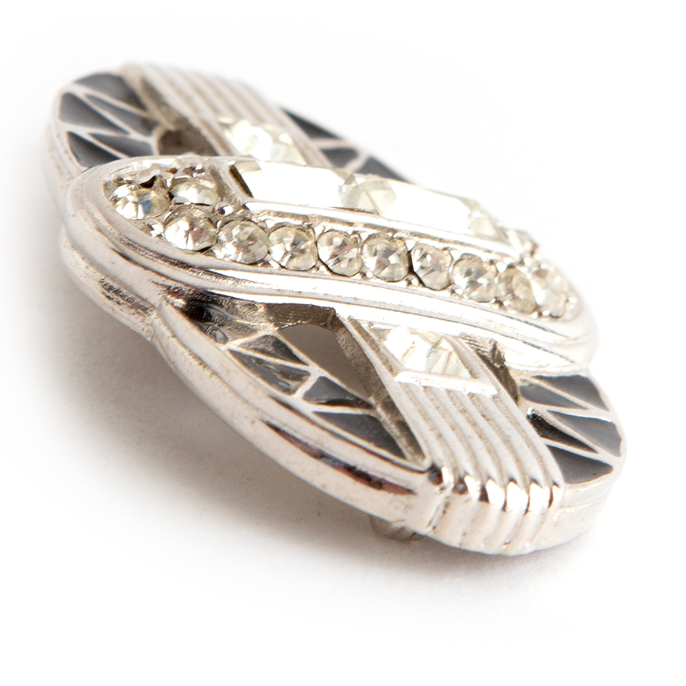 Vintage Givenchy silver-tone and black with glass chrystal stone brooch. Authenticity mark at the back of the pin.