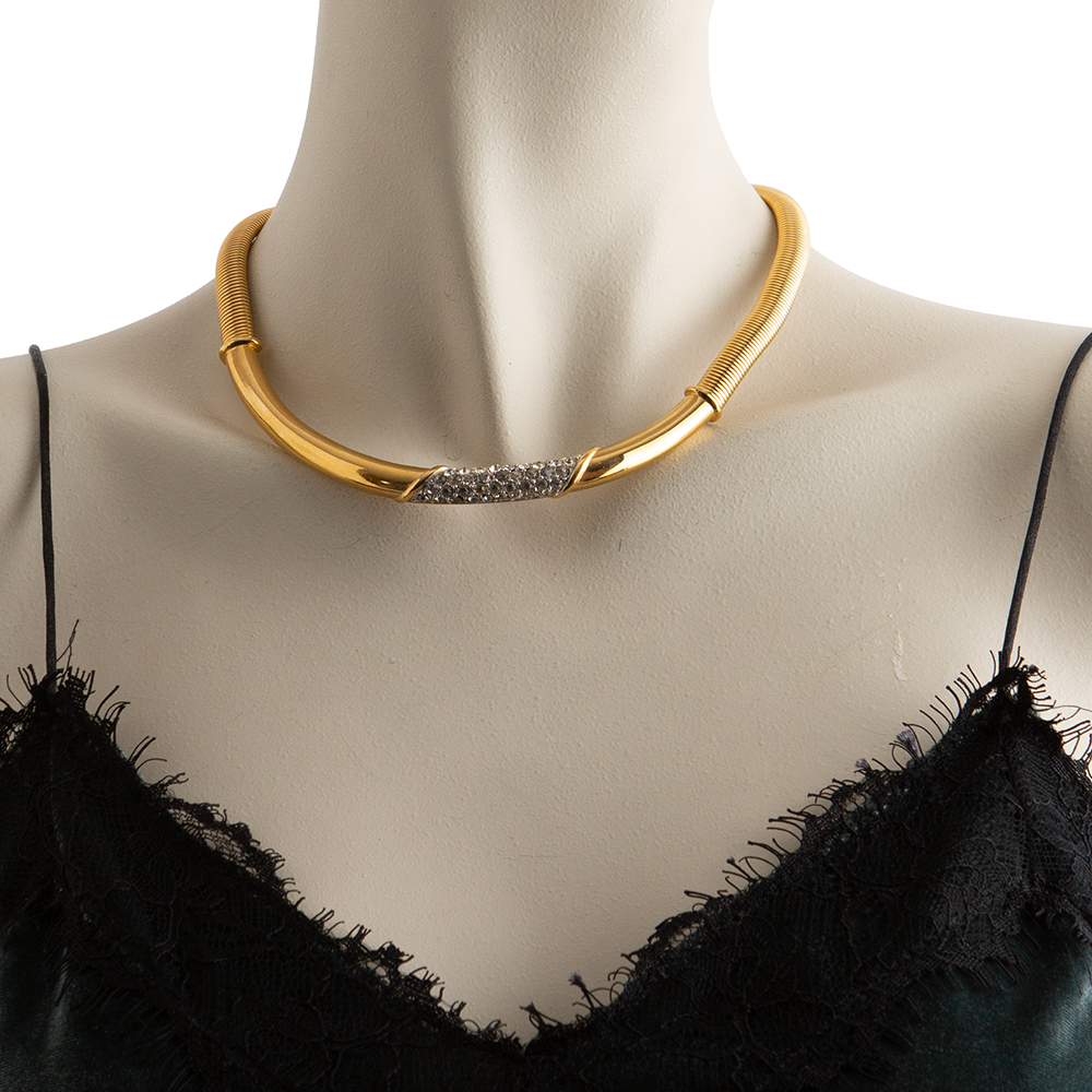 Vintage gold-tone metal choker necklace from Givenchy 1980’s/90’s. Vintage featuring a choker combined with stretchable part. With the Givenchy trademark at the back.
