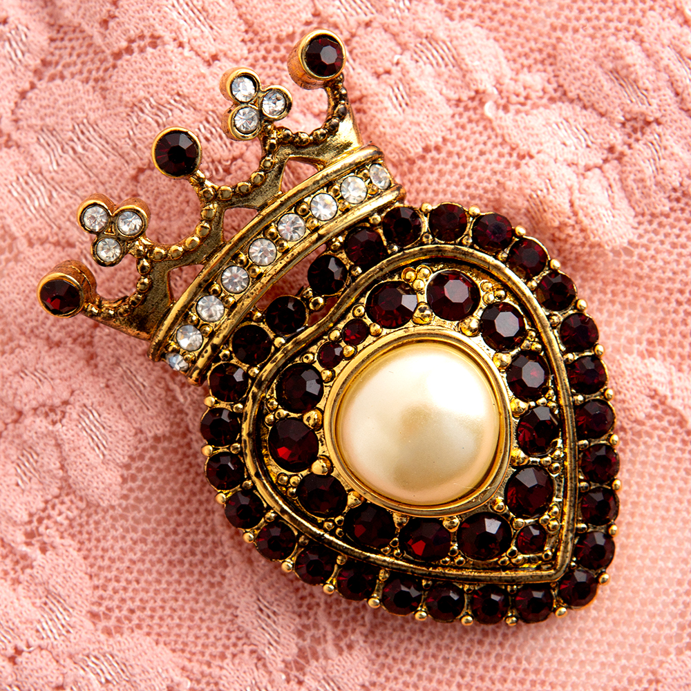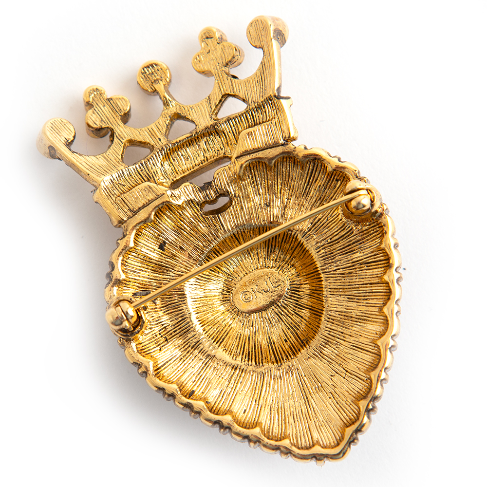 Fit for any pineapple lover, this amazing sparkling brooch features a jovial design in a crown shape with gold tone and multiple colored rhinestones.