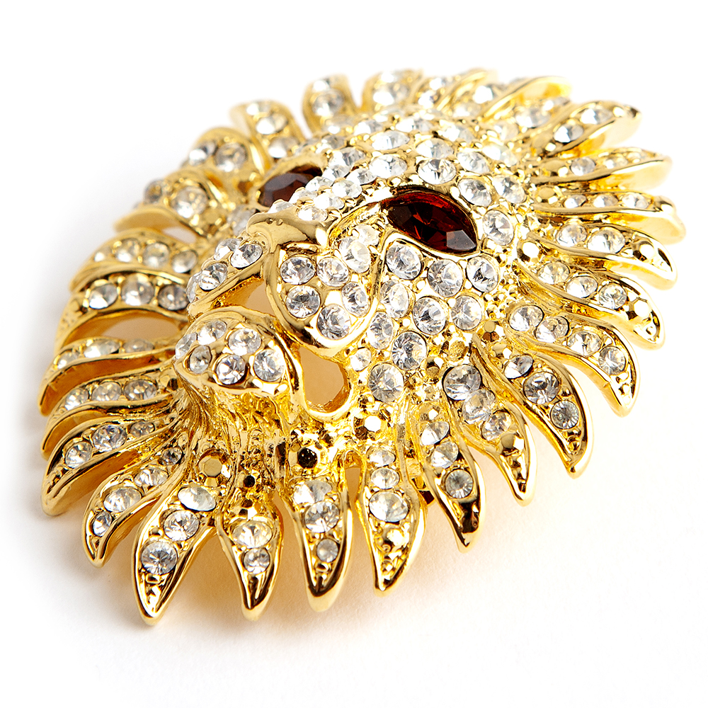Kenneth Jay Lane gold lion brooch. Authentic and Vintage gold-tone and pin.