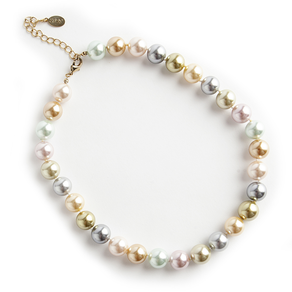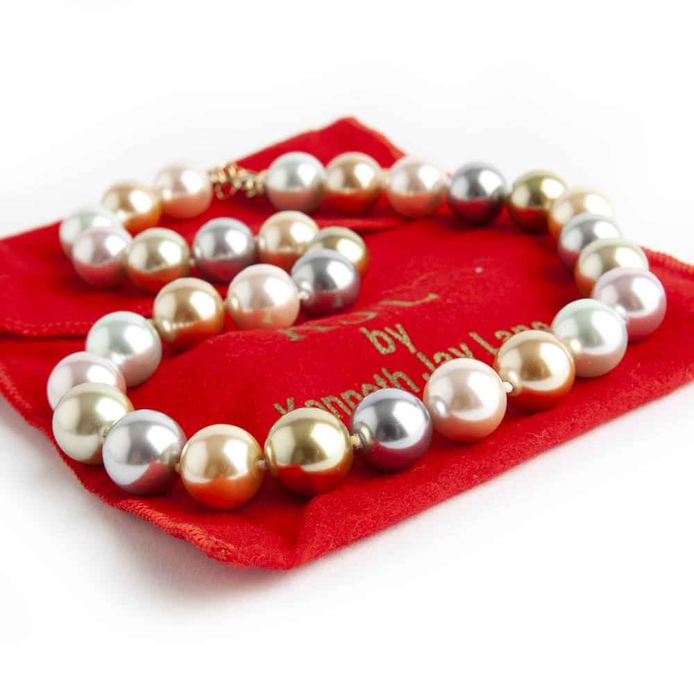 Vintage Kenneth Jay Lane costume necklace consisting of a faux pearled in different shadeof colors.