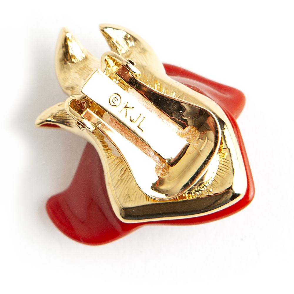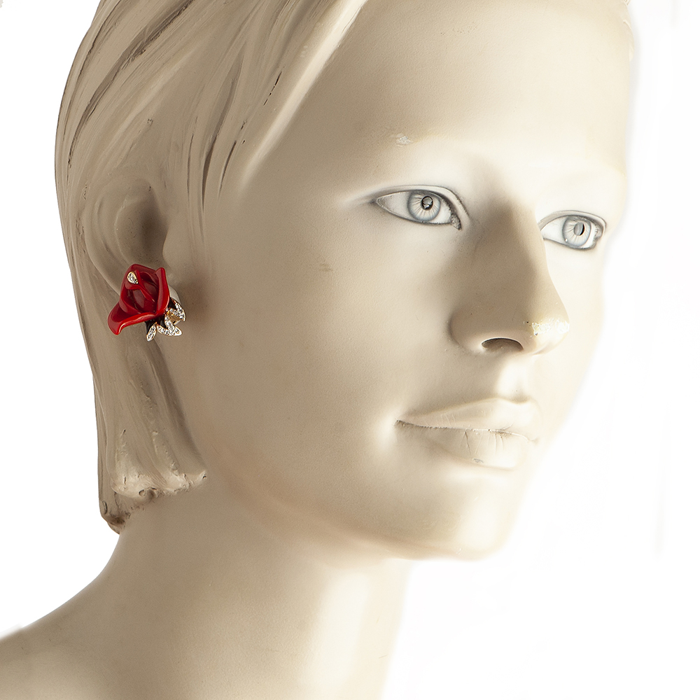 Vintage Kenneth Jay Lane costume jewelry earrings consisting of a red rose flower.