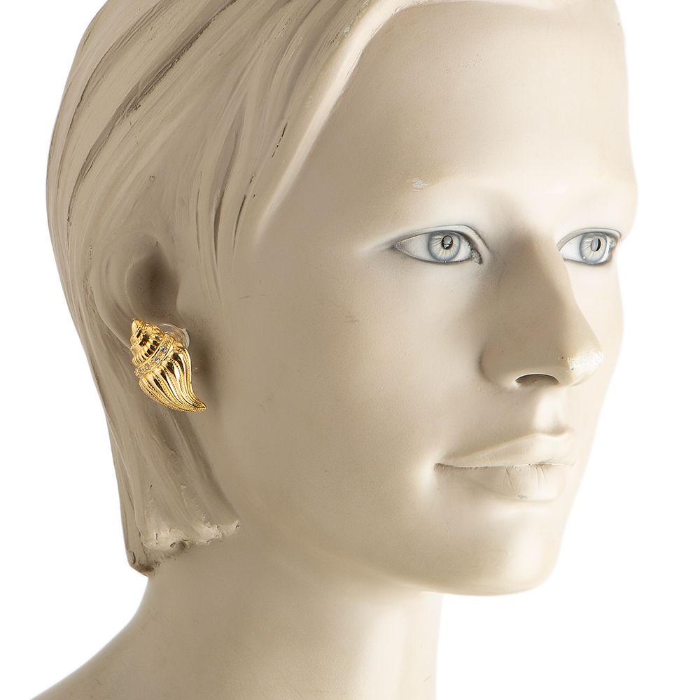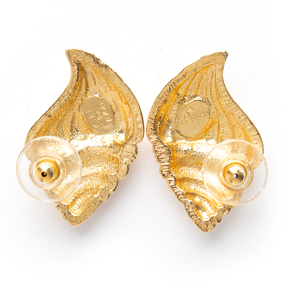 Kenneth Jay Lane vintage a large golden tone seashell stack earrings.