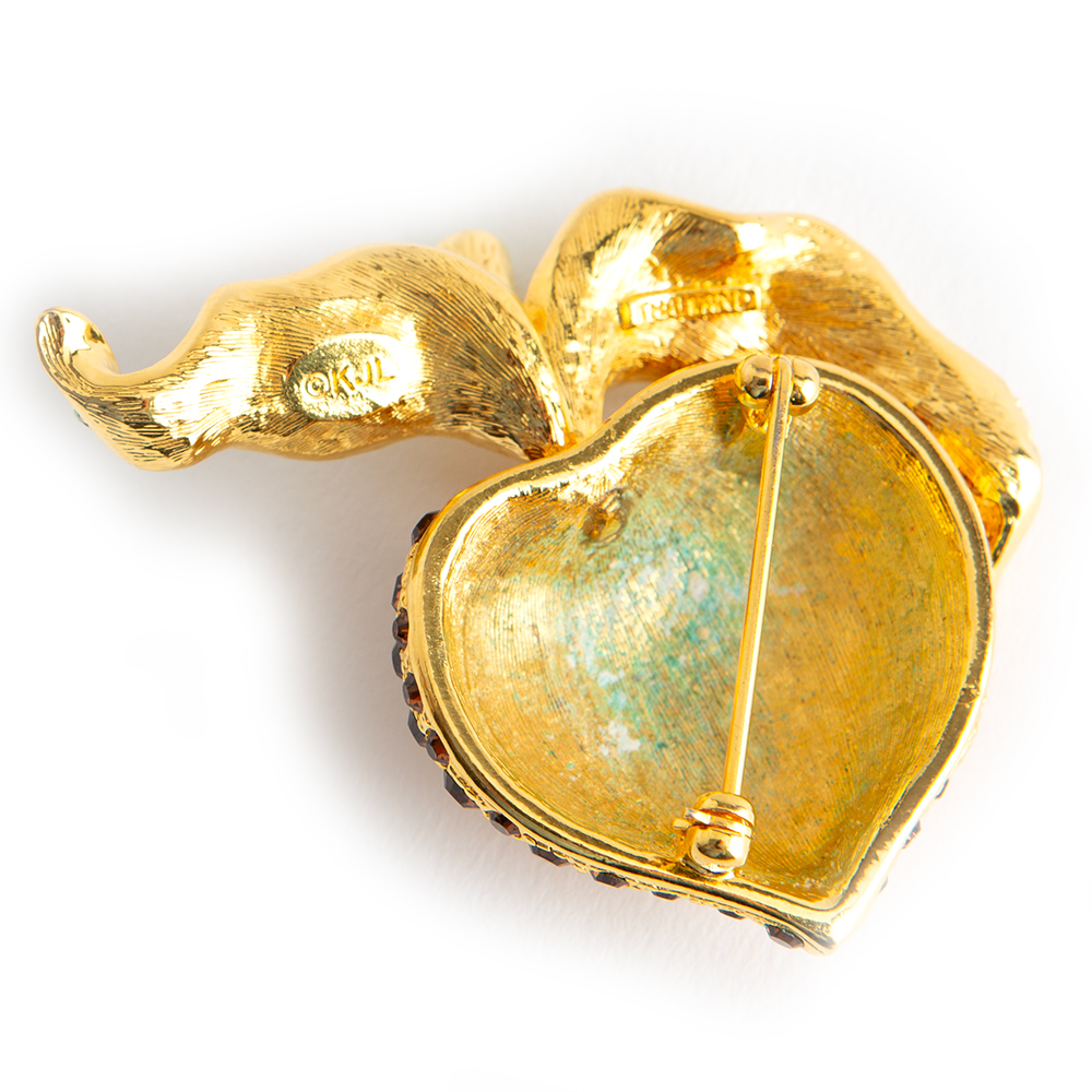 Fit for any pineapple lover, this amazing sparkling brooch features a jovial design in strawberry shape with gold tone and multiple colored rhinestones.