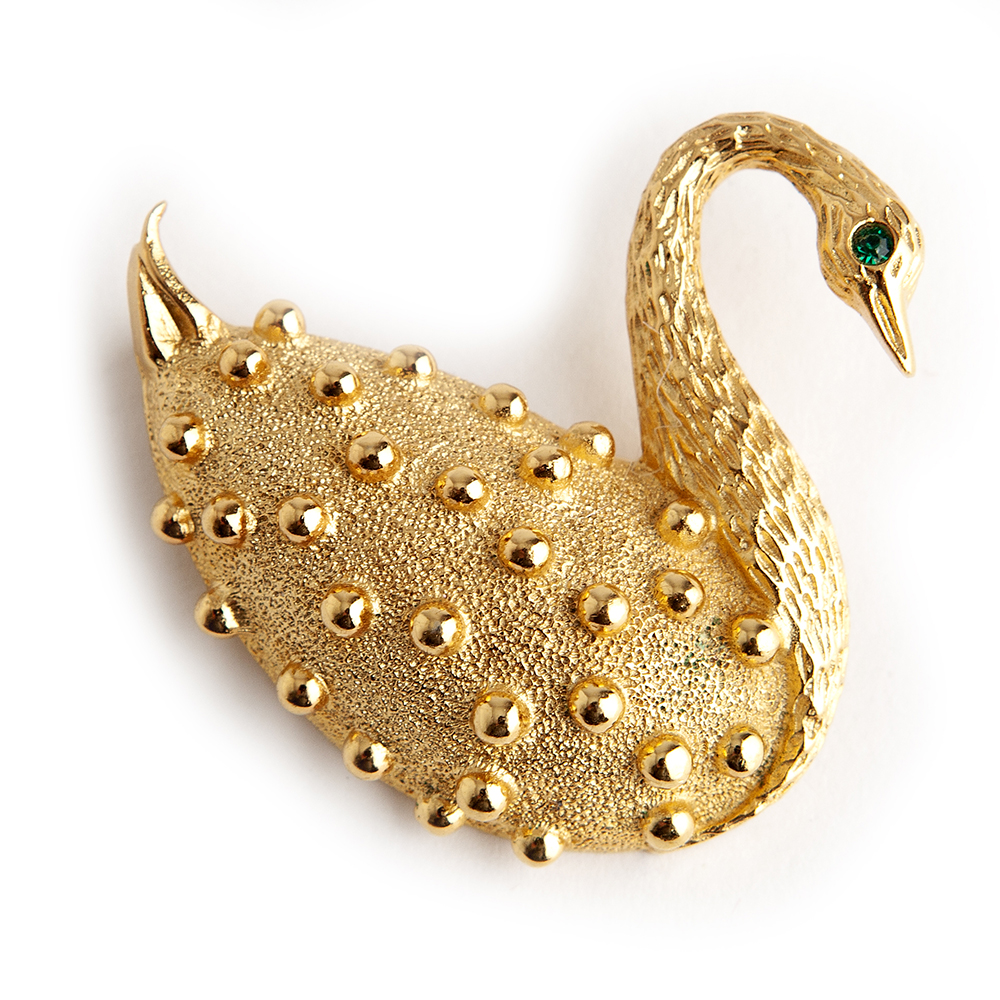 Fit for any swan lover, this amazing butterfly brooch features a royal design in gold tone base.