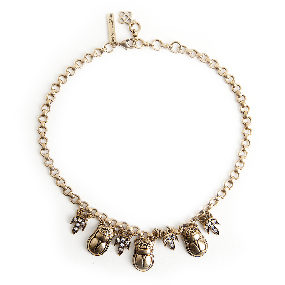 Oscar de la renta Egyptian style royal scarab necklace in gold-tone. Signed Oscar De La Renta.