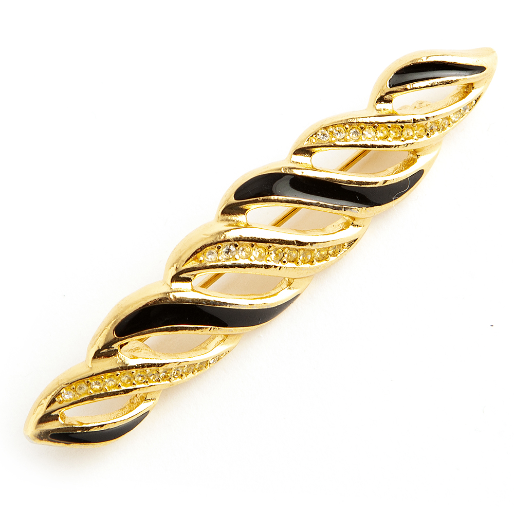 Add a lavishing touch to your garment with this gold plated combined with Black enamal brooch from Christian Dior.