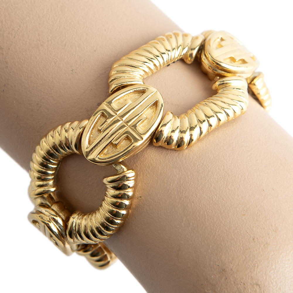 Gold-tone metal bracelet from Givenchy 1980’s – 90’s. Vintage featuring bold large square and round links.