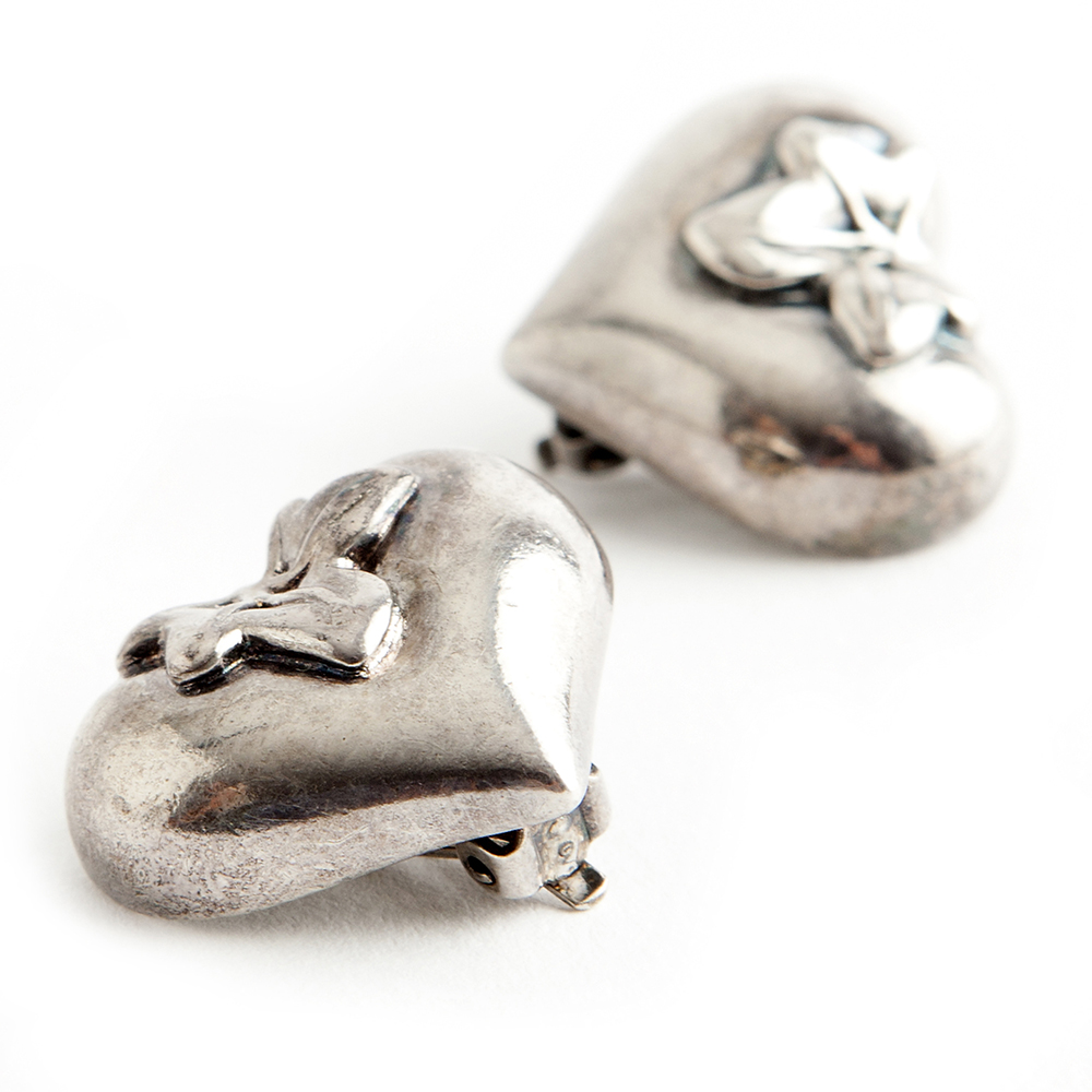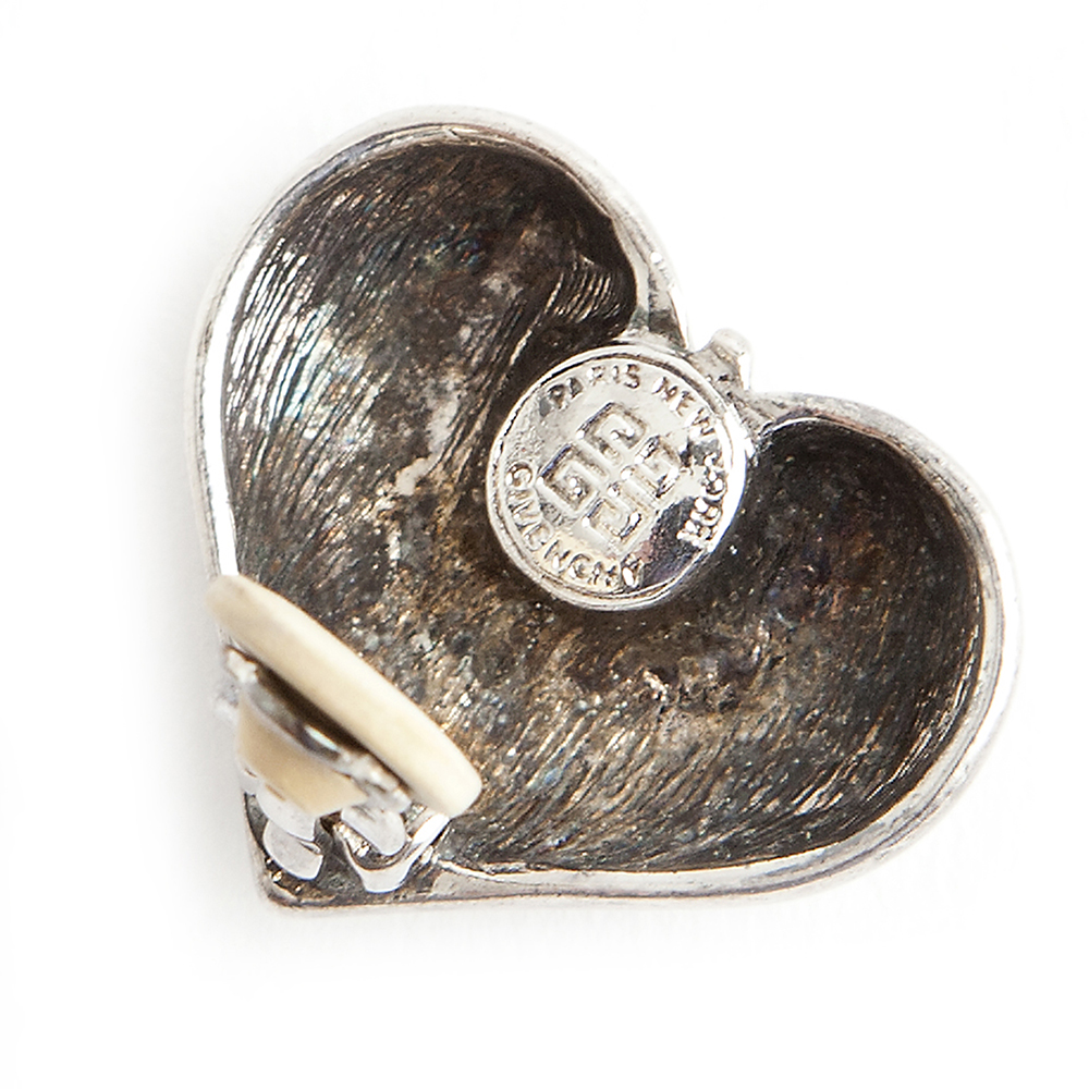 Vintage and authentic Givenchy clip on in solid plated silver. Features a jovial heart design and a authenticity mark at the back of the earrings.