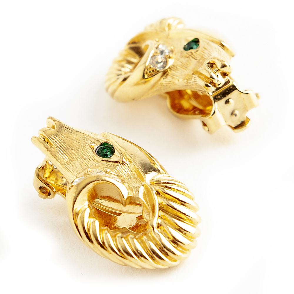 Vintage and Authentic Kenneth Jay Lane ram gold – plated earrings.