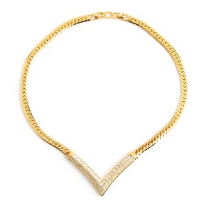 Signed Christian Dior, gorgeous gold plated necklace, with black enamel and chrystal large glass stones. This is a classic Christian