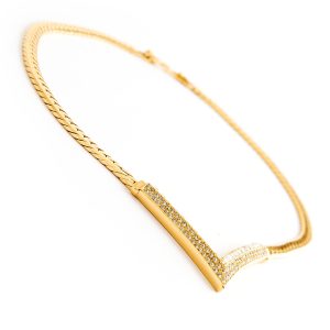Signed Christian Dior, gorgeous gold plated necklace, with black enamel paste surrounded by clear chrystal stones. This is a classic